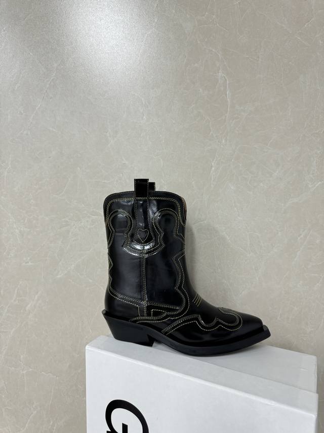 Ganni |秋冬新品美式复古西部牛仔靴 肯豆同款西部靴真的太好穿了 秋冬穿正合适~ 西部风情搭配刺绣细节 潇洒又俏皮~ 修饰小腿线条 姐妹们早点下手 Size