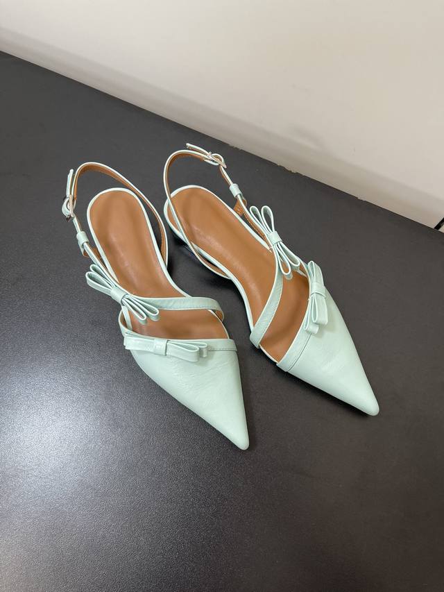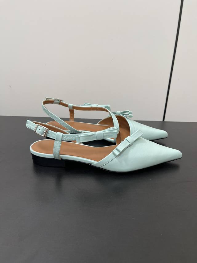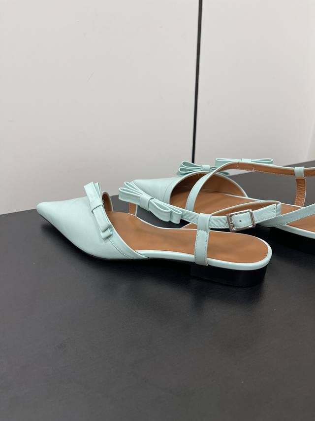ganni24春夏尖头蝴蝶结配饰凉鞋穆勒鞋!夏天配色!可盐可甜!