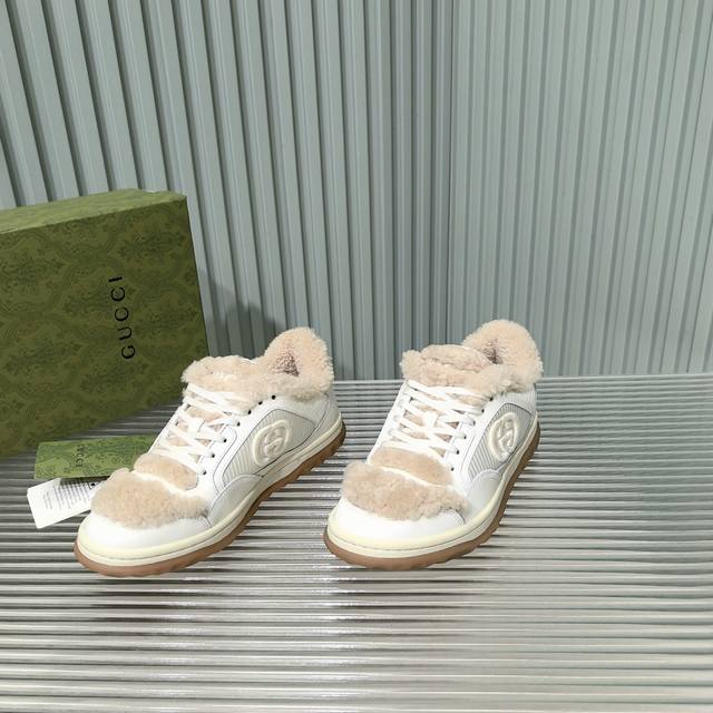 gucc I Fw23情侣毛毛运动鞋,顶版出货! G家秋冬mac80 情侣款运动鞋 鞋面小牛皮,内里皮毛一体 细节满满,精致低调! 情侣size 35-45