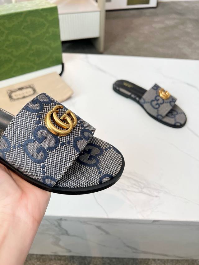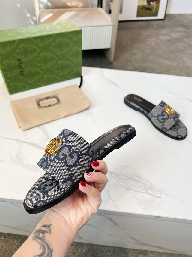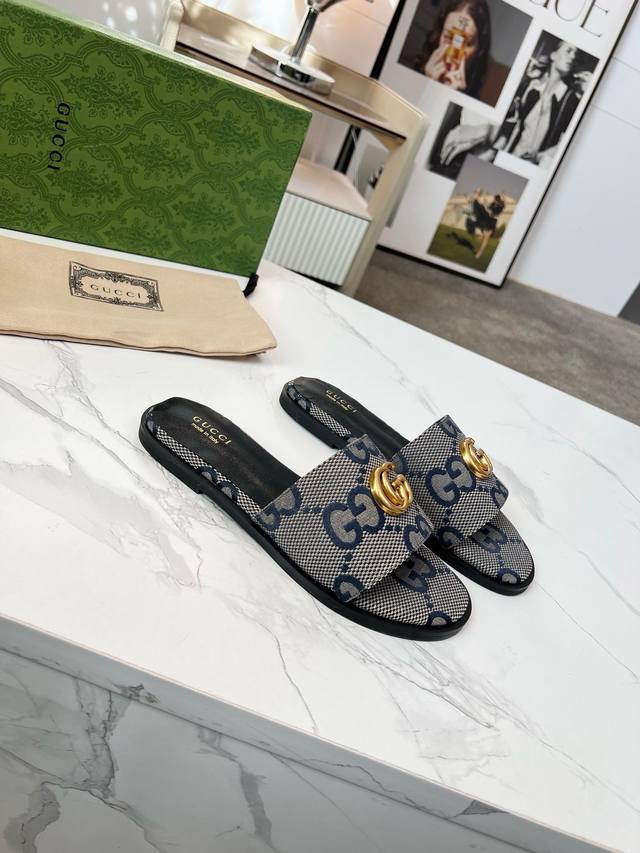 guccl,25春夏新款休闲女土互扣式双G凉拖,35-43码,橡胶底P210,皮底P260