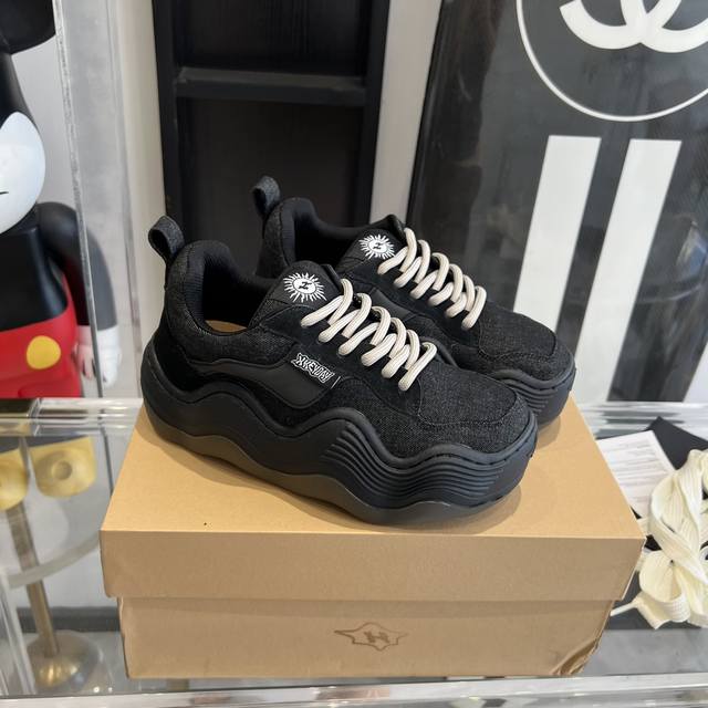 原版定制帆布牛皮面料 内里进口透气网里 原版开模tpr波浪组合大底 底厚5Cm