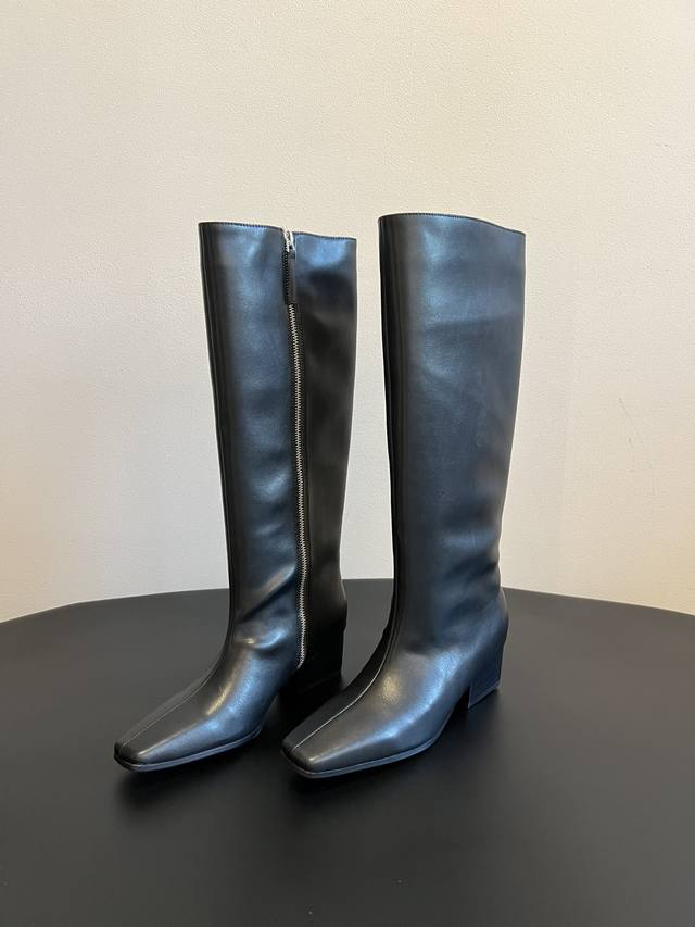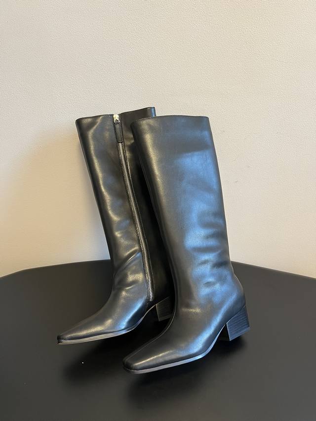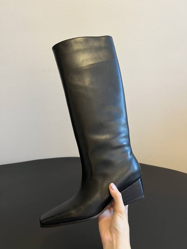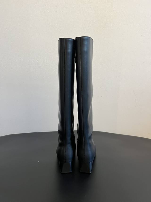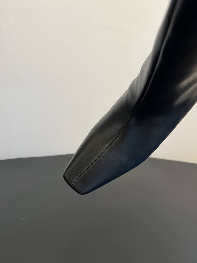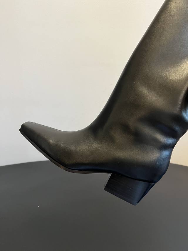 Hidem* 25Ss 方尖头切尔西雾面亮牛皮厚底方跟长靴 属于切尔西靴款式,具有经典的切尔西靴特征,比如侧边有松紧带或者拉链设计,整体靴型流畅,能够很好地贴合
