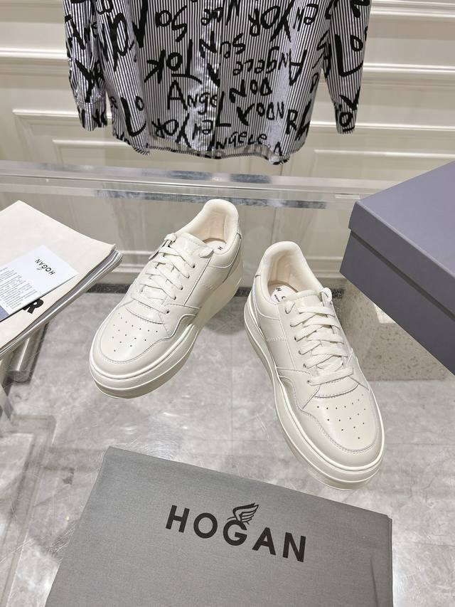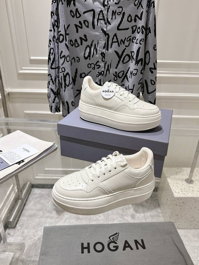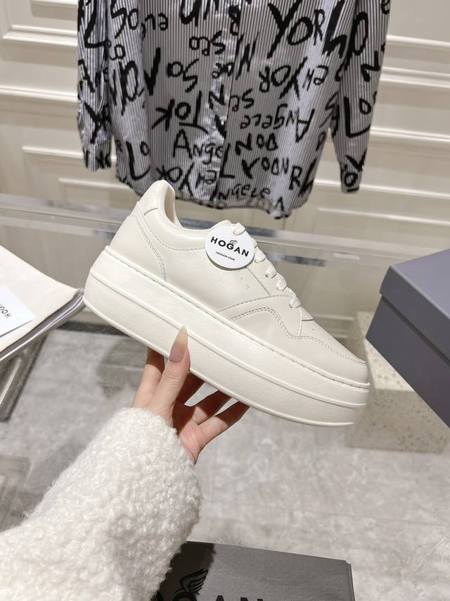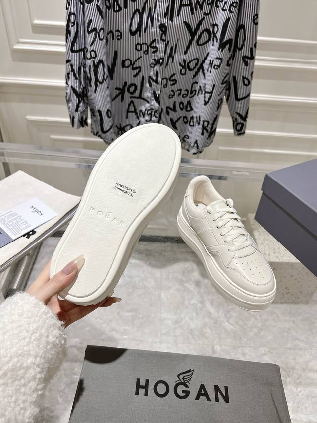 / Hogan2025最新款h670系列女士厚底小白鞋 面包鞋 休闲鞋上脚超级舒服百搭 内增高6Cm秒变大长腿面料:原版小羊皮内里:原版透气布里垫脚:原版注塑成型垫