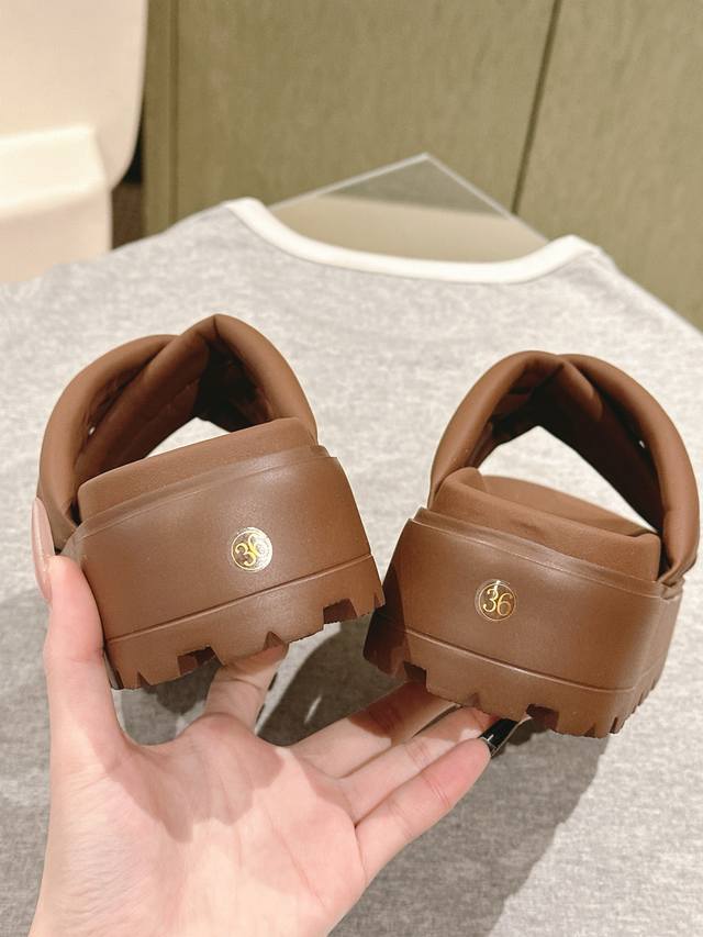 厚底松糕,带Logo 防滑鞋底,这款鞋子上脚非常舒服,脚感很棒 底厚5.5Cm