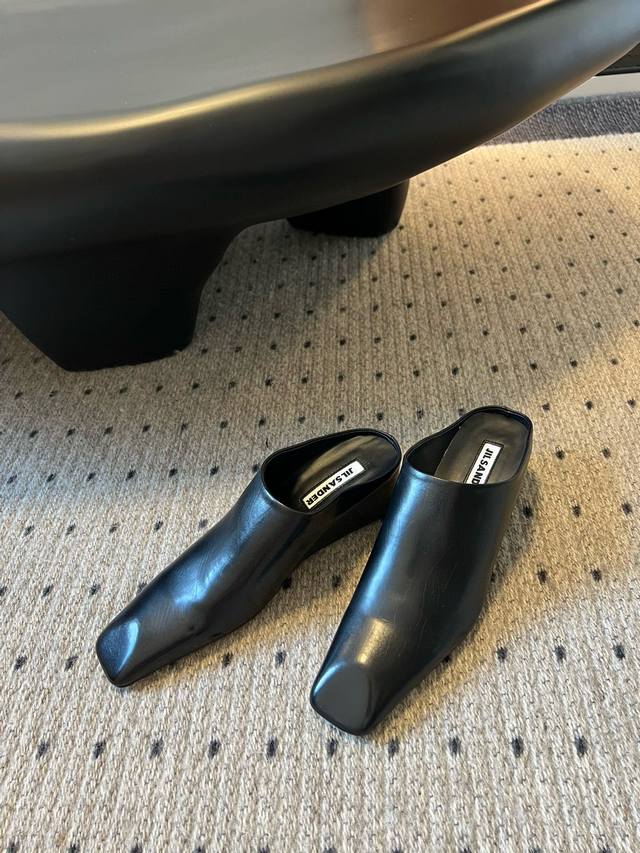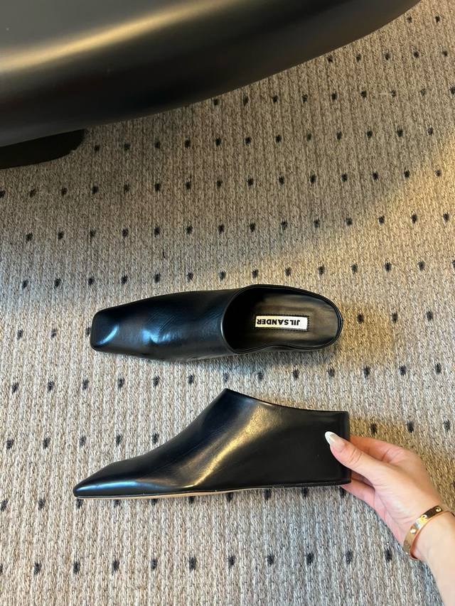 / jil Sander 25小方头坡跟皮拖 穆勒鞋 对鞋子有强烈要求舒适感的 必入的一款,適合懶人穿的 一套进去就可以出門了,知性有個性的姐妹不要錯過 鞋面:牛皮