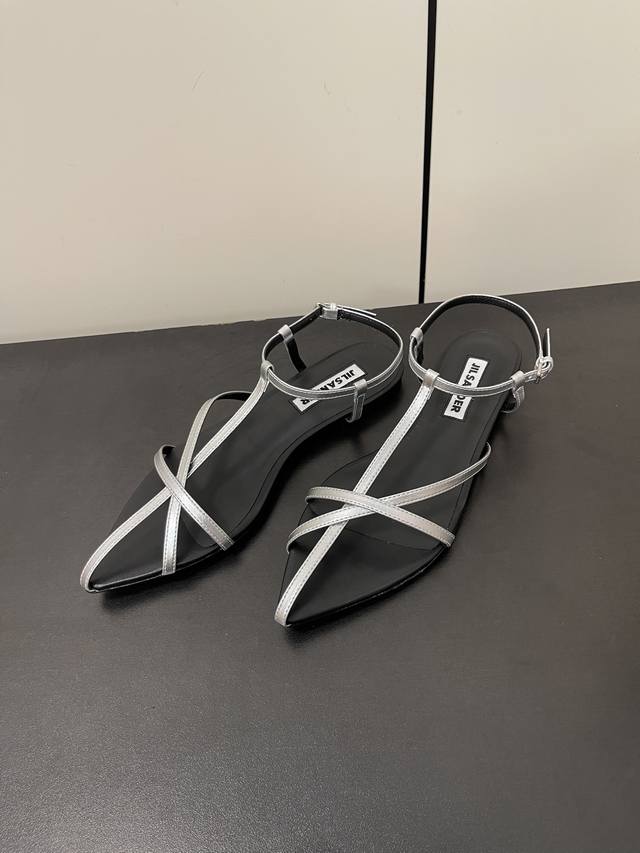 jilsander 春夏新款小猫跟尖头骨感凉鞋