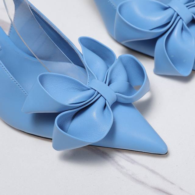 Staz Sling Back 系列露跟高跟鞋,采用皮革材质打造别致优雅鞋型,搭配精美蝴蝶结和立体鞋跟设计,尽显时尚个性气质。