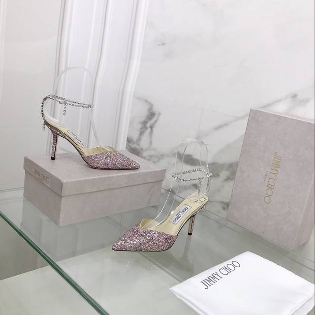 Jimmy Choo 春夏水晶链高跟鞋 高品质 超多明星穿的一款 材质:进口格利特,内里羊皮 水钻原版定制意大利真皮大底 跟高:8.5Cm 码数:35–39