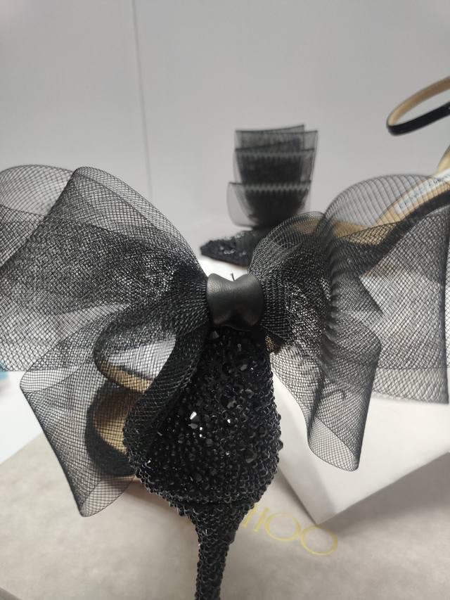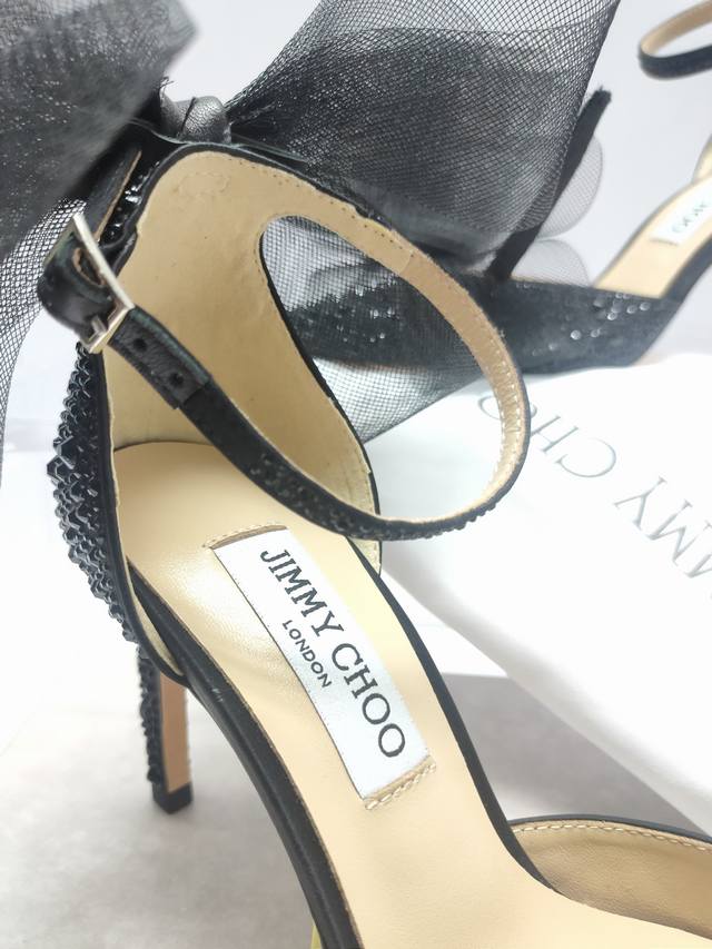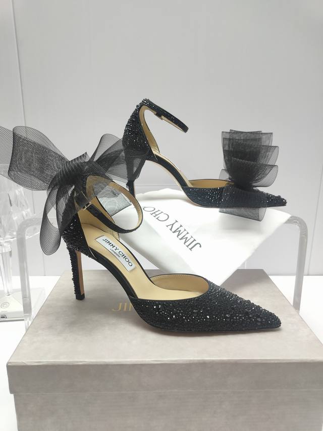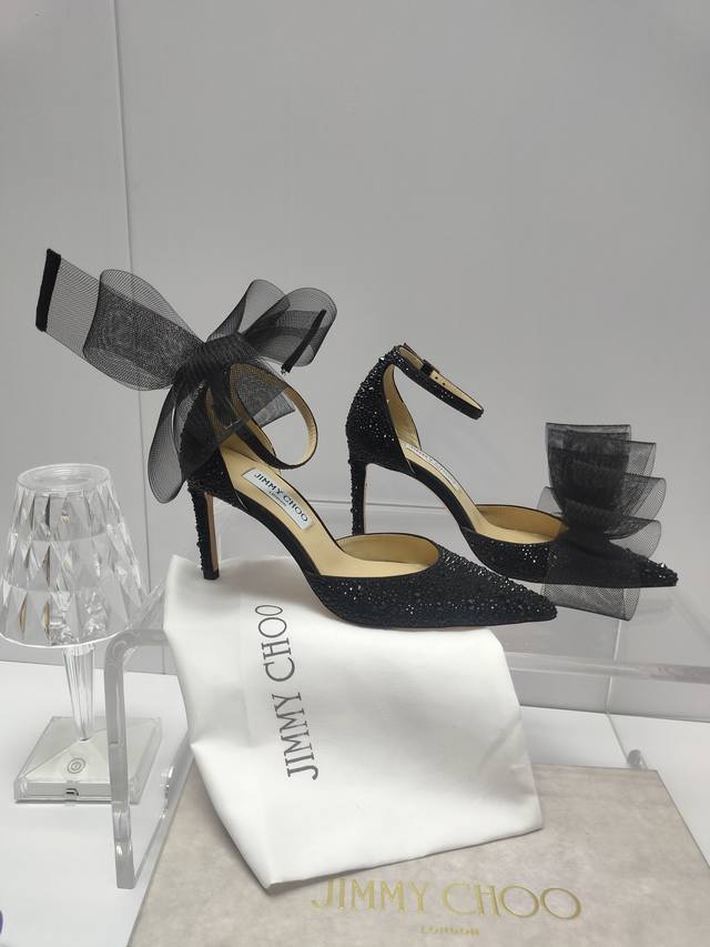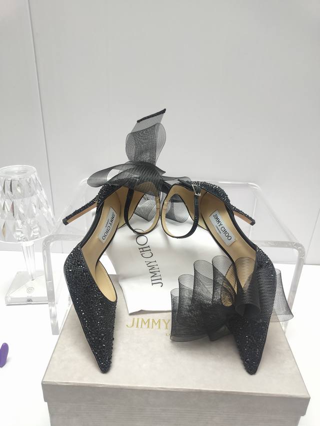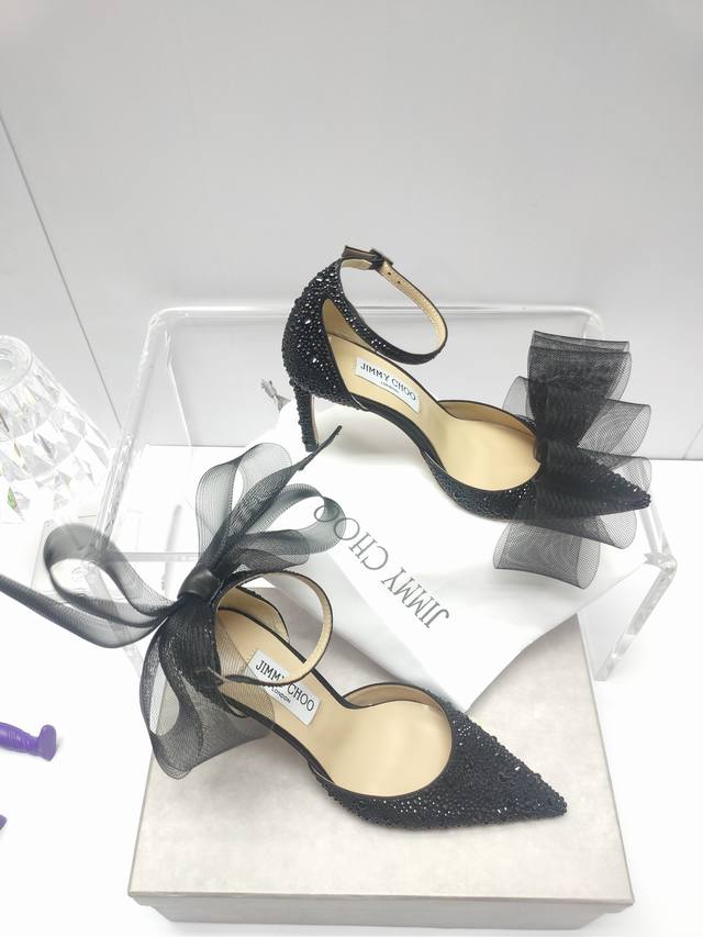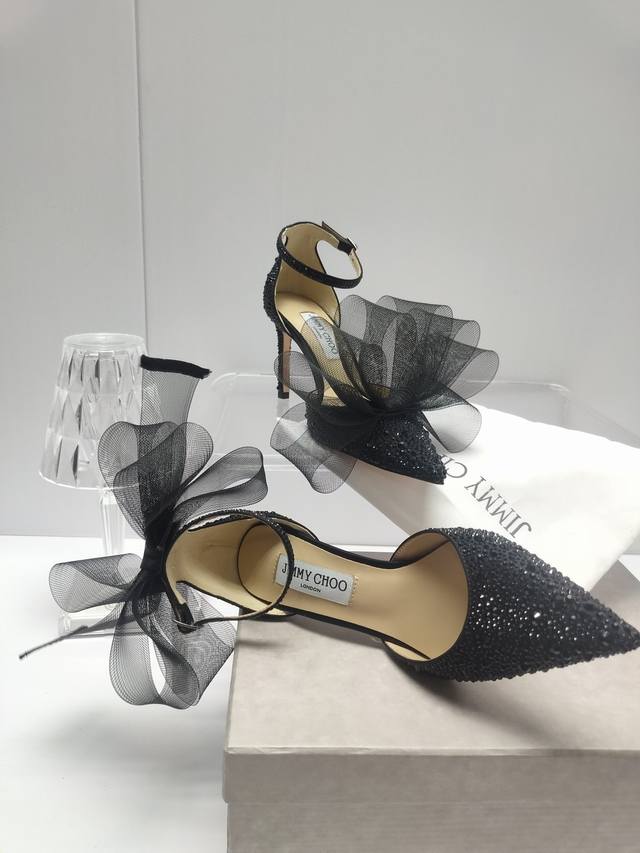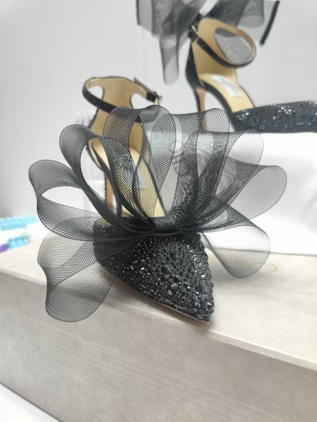 Jimmychoo专柜水钻新款主推系列羽毛蝴蝶结气质仙女高跟鞋,仙女必备,婚礼 宴会女神首选.