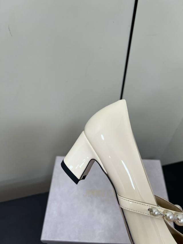 Jimmychoo New Arrival~Jc 2025早春 方头方跟的造型玛丽珍单鞋,复古时髦的调性,点缀珍珠装饰,增添了精致优雅的韵味小羊皮材质,脚感满分