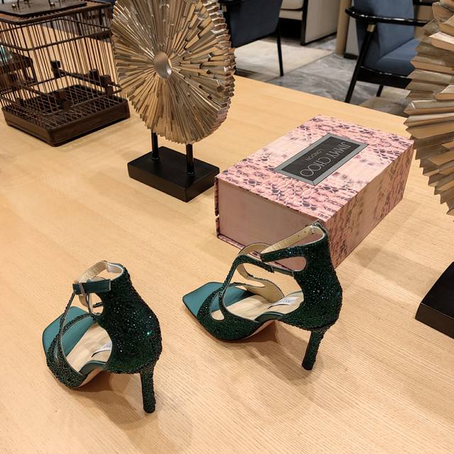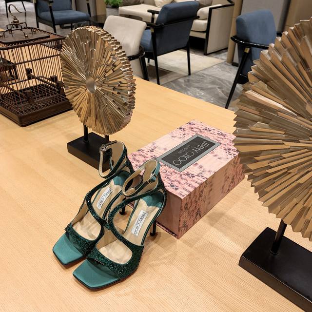 jlmmy Choo周仰杰2024 专柜款3D棱格磁铁盒包装 顶级版本,低端勿比。 摩登鞋履,Azia95大弧度手工绸缎凉鞋系列。 “彩色系满钻烫系列”!