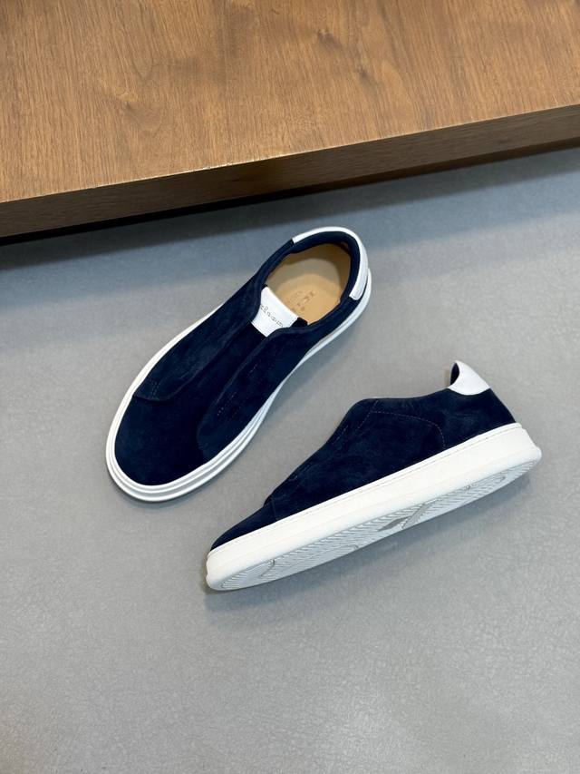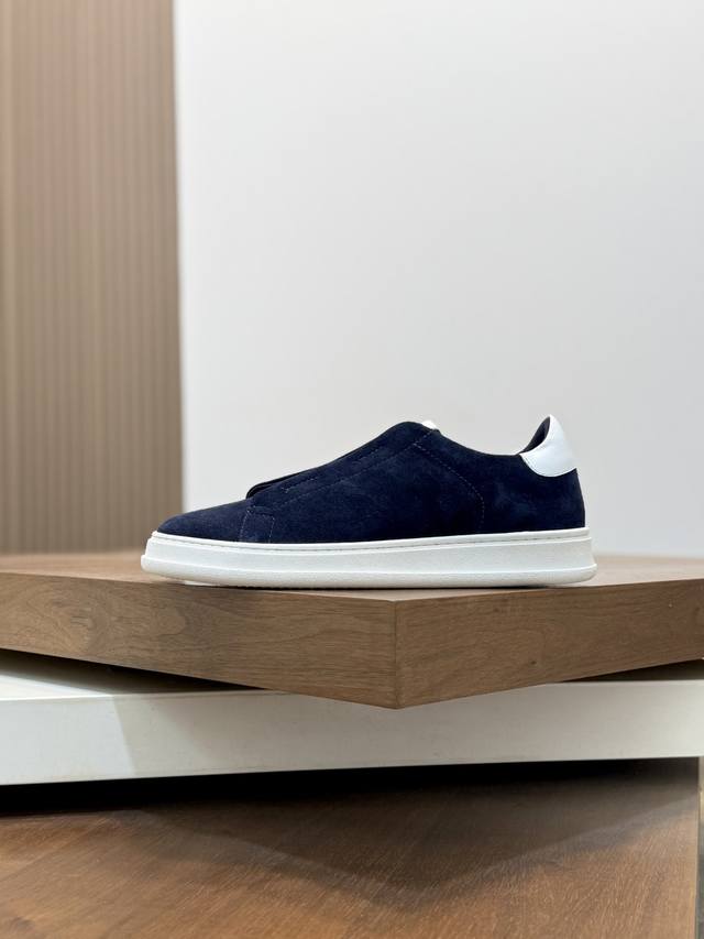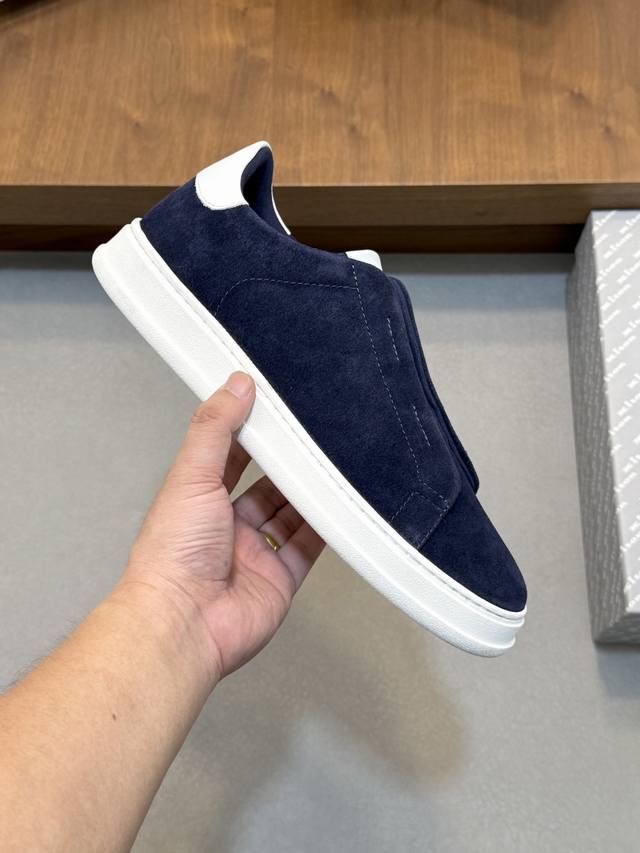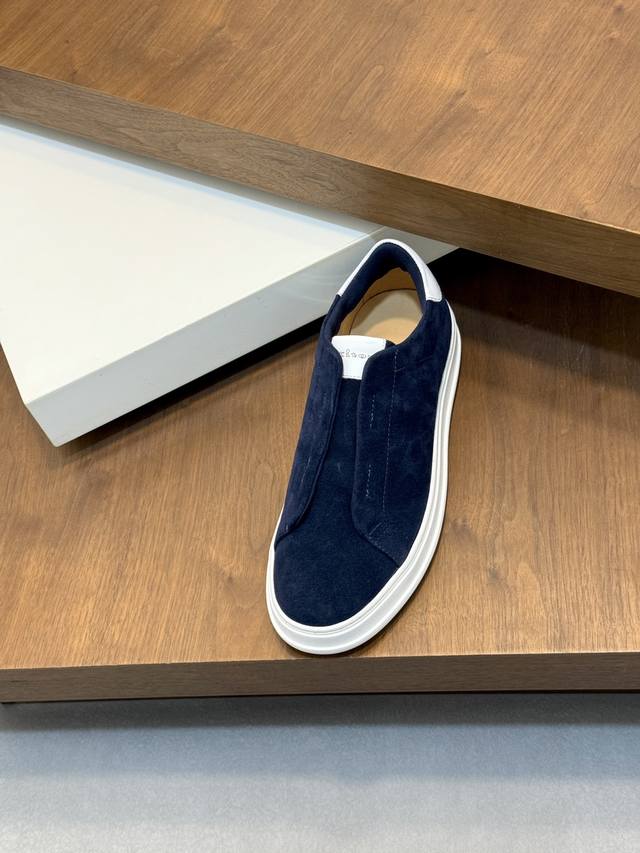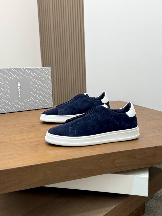 Kiton高端奢品,男士洗水牛仔面料运动鞋,鞋面由反绒小牛皮制成,一体成型工艺制作!