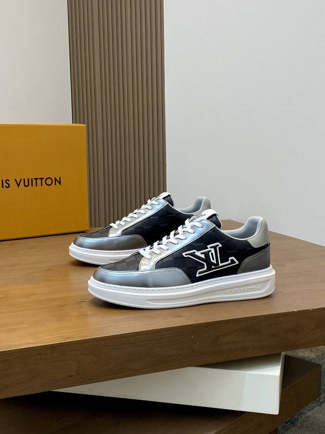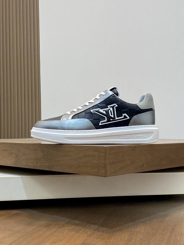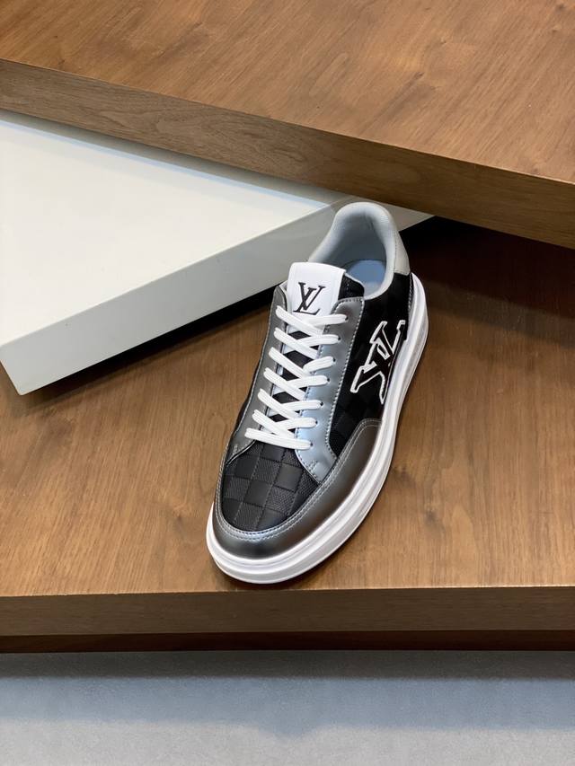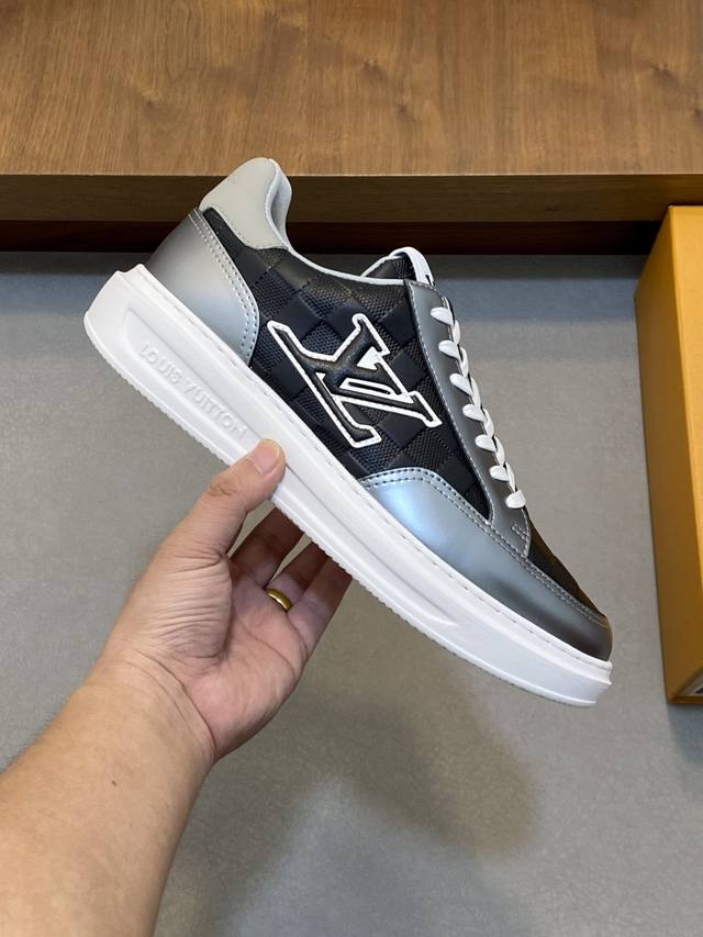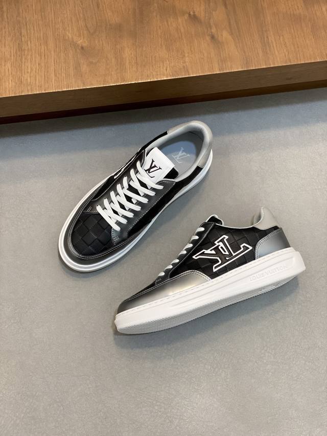 L 新品男士高端休闲运动鞋,选用进口头层牛皮丝印品牌Lougou,原版超轻Tpu大底,耐磨舒适,Monogram Lougou点缀橡胶外底,透气网布内里,百搭经典款式!