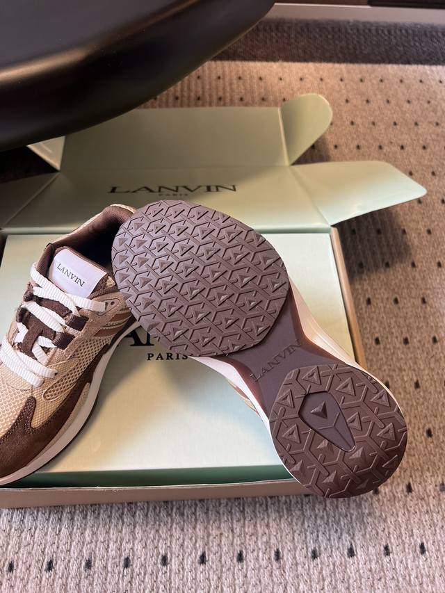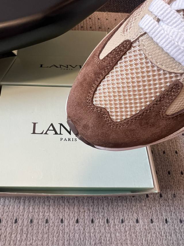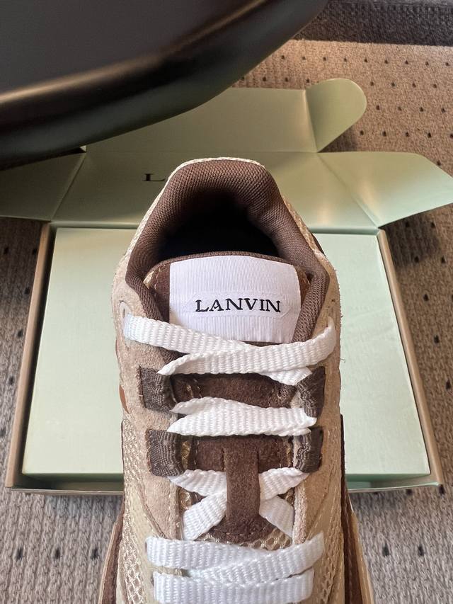 原版购入开发 做货 这款男女同款运动鞋轻便舒适,网片设计让鞋面更轻盈.不怕脚闷,鞋子搭配裙装裤装都显时尚。鞋面饰以Lanvin经典J 标志 弯曲线条致敬Lanvin标志的圆形元素,展现品牌匠心。这款鞋履集运动、时尚、工艺于一身