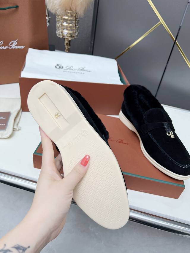 面料采用进口羊猄皮,内里真皮羊毛制成 手工缝制线,原版带署名字母生胶底,比传统橡胶底更轻巧舒适。