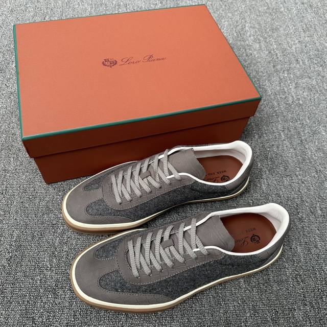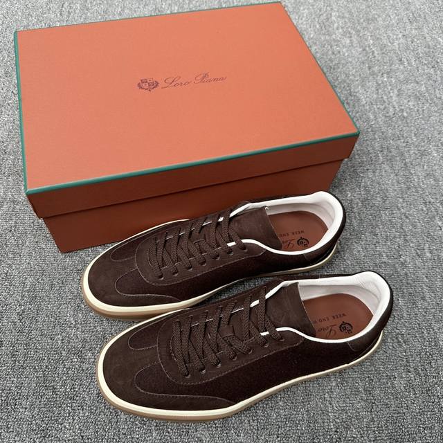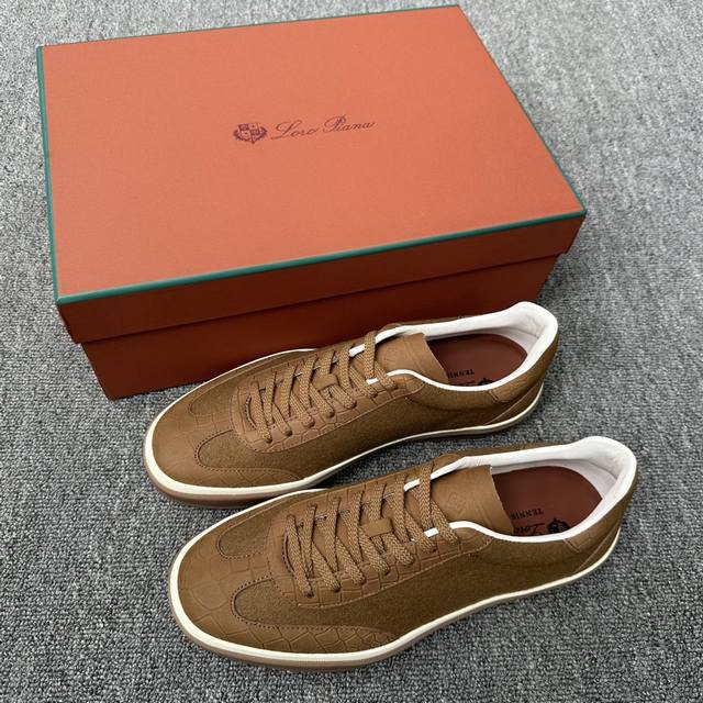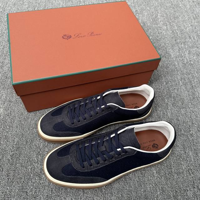 Loro piana 诺悠翩雅 这款新款羊绒面革网球鞋采用超低帮设计,适合全年穿着,并具有防水性能。包边鞋底营造轻松迷人的色彩组合,将功能性与低调个性风格和谐融合。打造都市着装的理想鞋履选择。鞋跟处饰以Kummel色嵌片柔软小牛皮鞋舌,压印Lp徽标棉质鞋带