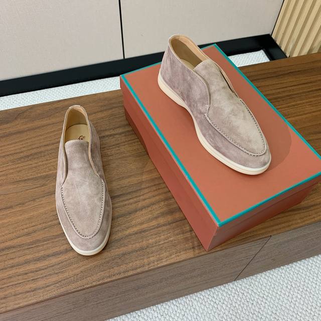 Loro Piana 高帮乐福鞋。意大利顶级羊绒复古优雅低调奢华。时尚性与皮料实用性同样兼具依然全网最高品质。鞋面羊京丝质柔滑。手工缝线,水染皮里。原版大底。配