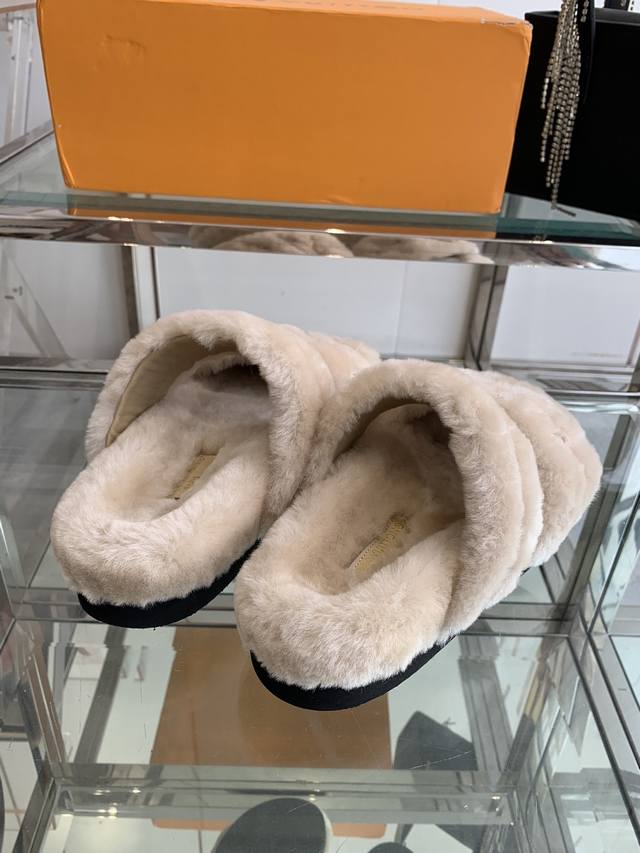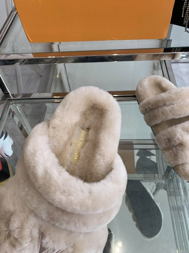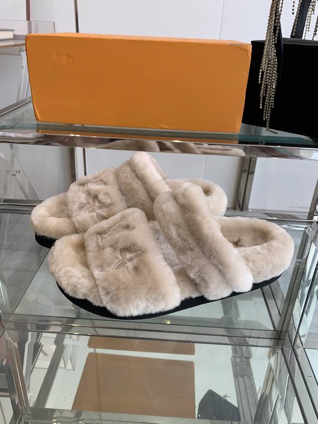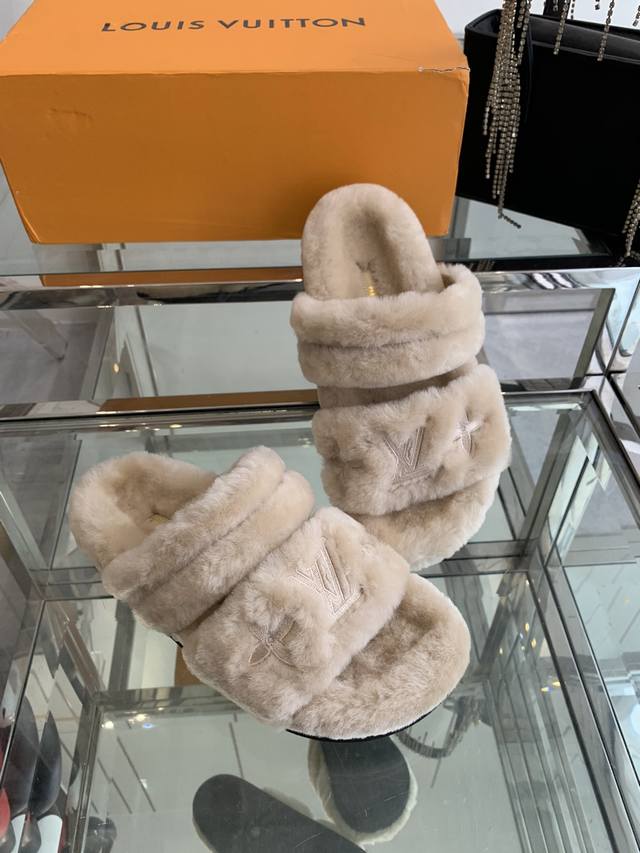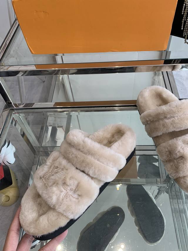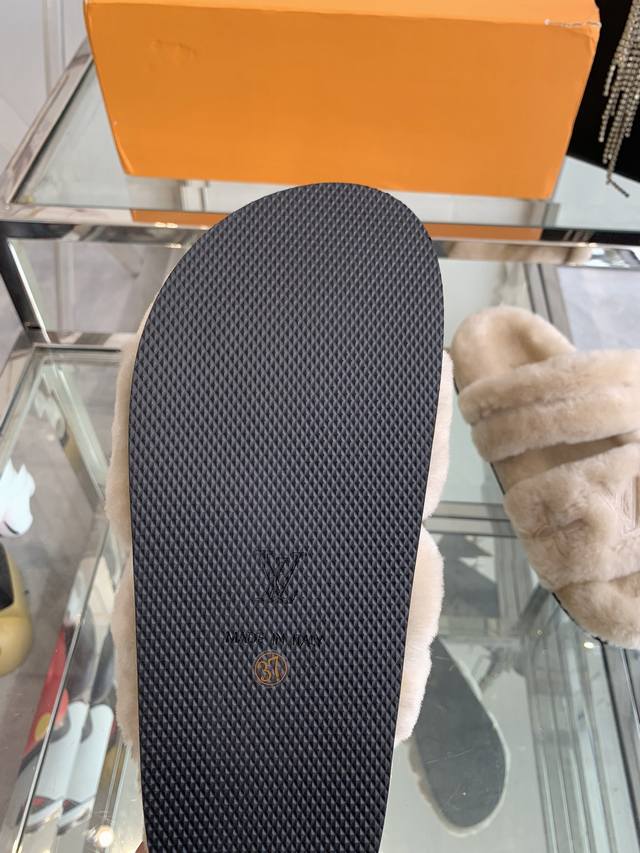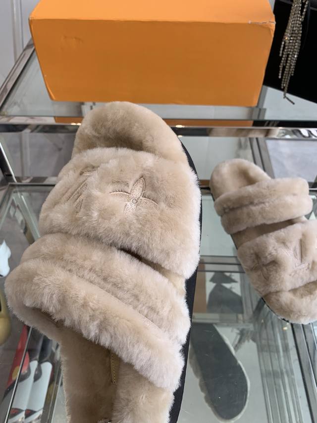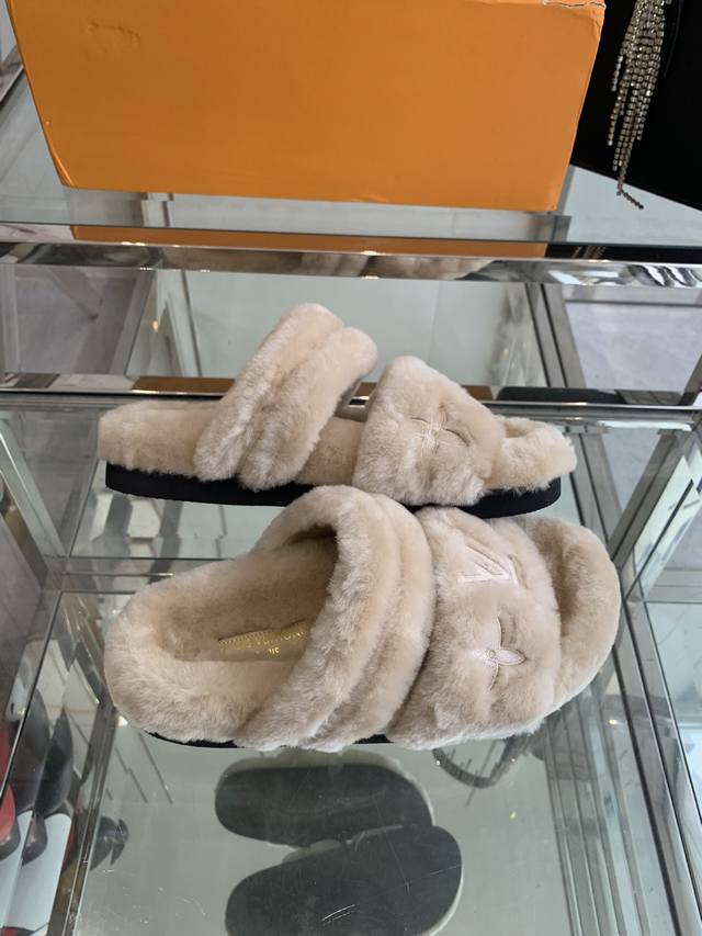 louis Vuitton 24Ss秋冬新款 情侣款平底羊毛拖鞋 超舒适的lv双带毛拖 简约随性 时髦有范, 慵懒又不乏高级感,最舒适的拖鞋没有之一 随意上脚都