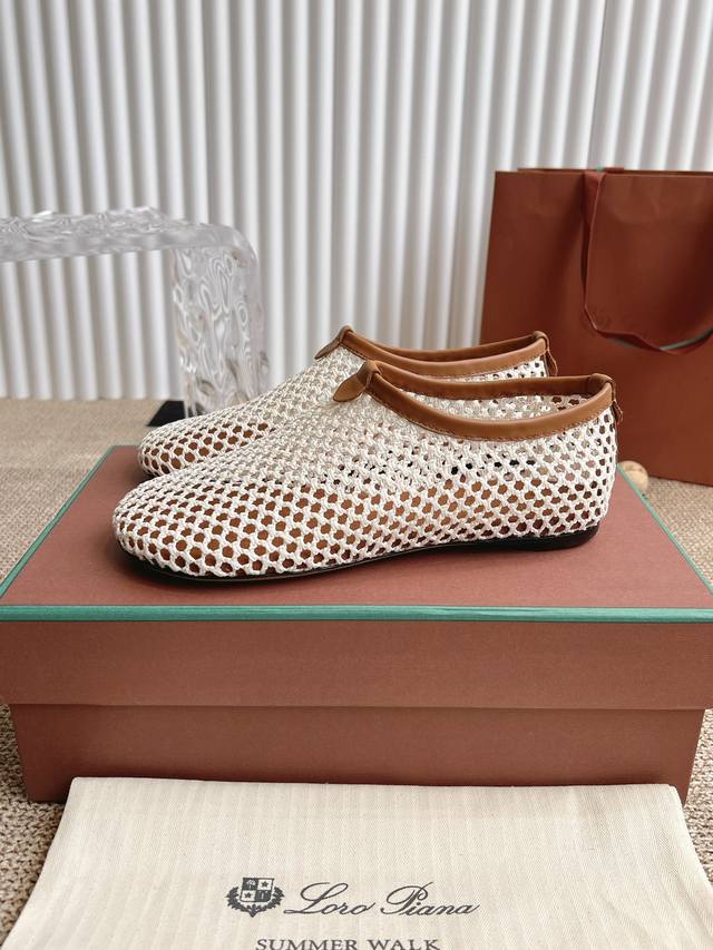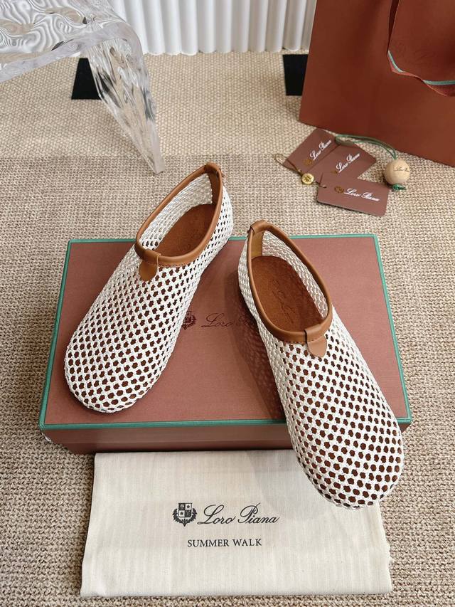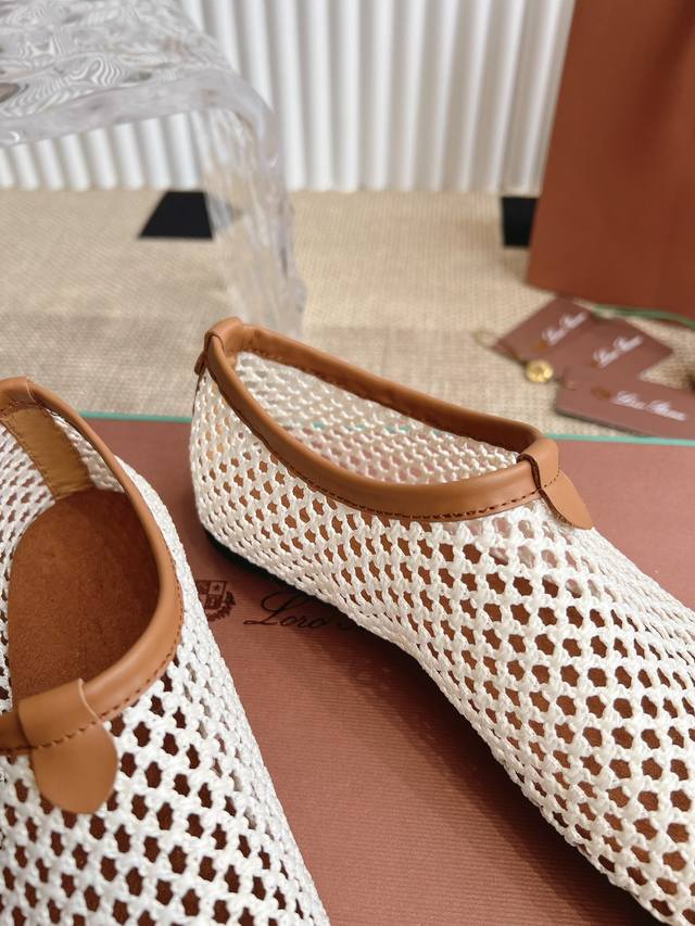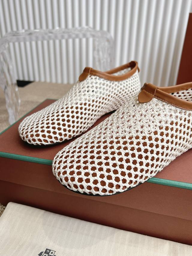 新品发售毛鞋|鞋面采用 编制网纹制作工艺|一比一复原专柜套包工艺,舒适,大方,轻便,百搭的一款平底芭蕾舞鞋,镂空钩针鞋穿上有档次而有个性!是m M少不可缺的一双美鞋|高难度制作流程原版意大利真皮大底
