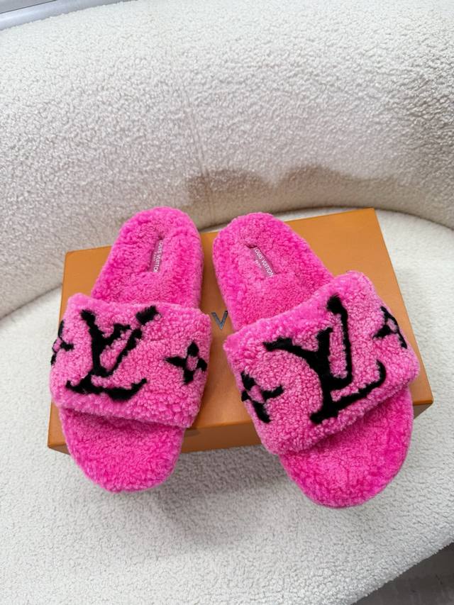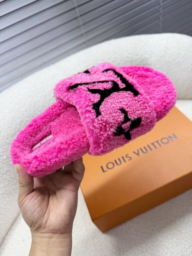 lv 毛拖,超级舒适的一款羊羔毛拖鞋