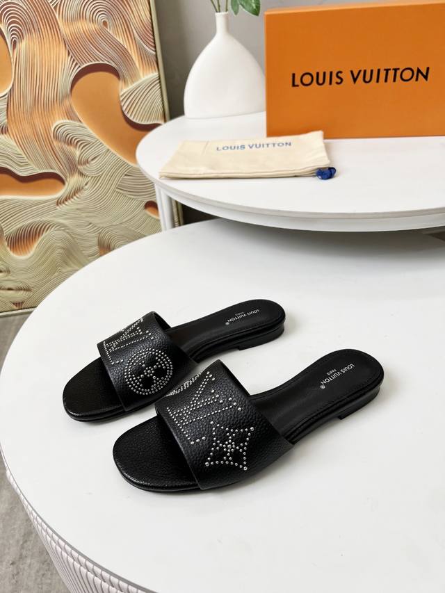 lv2025新款拖鞋。35-43。平底像胶底P270。真皮底210