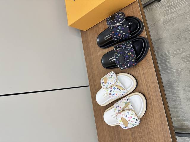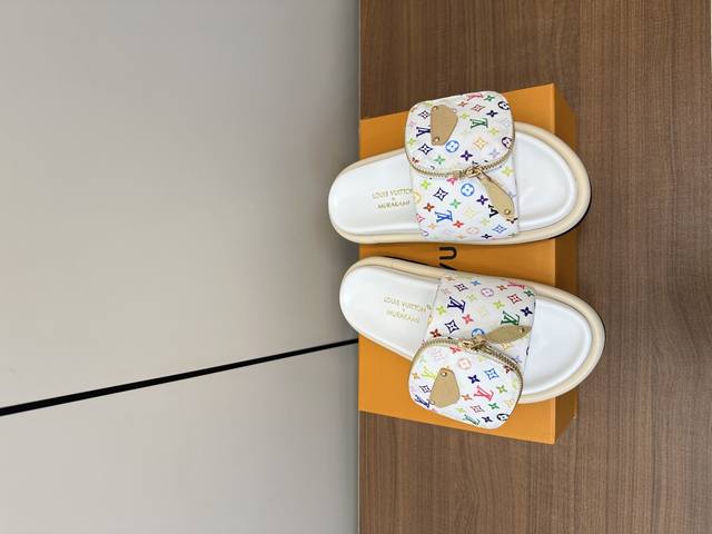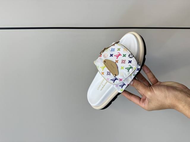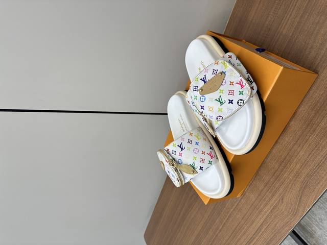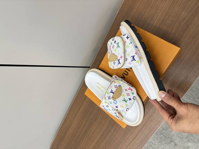 lv2025春夏新款|白三彩魔术贴拖鞋 P310 louis Vuitton Ss25 New Arrival~ lv2025春夏新款|三彩老花魔术贴面包拖鞋