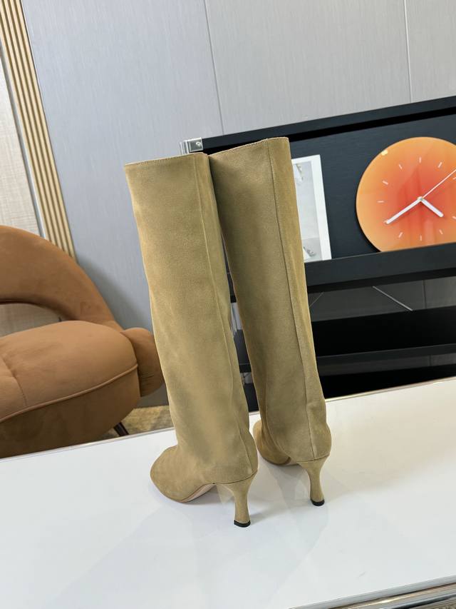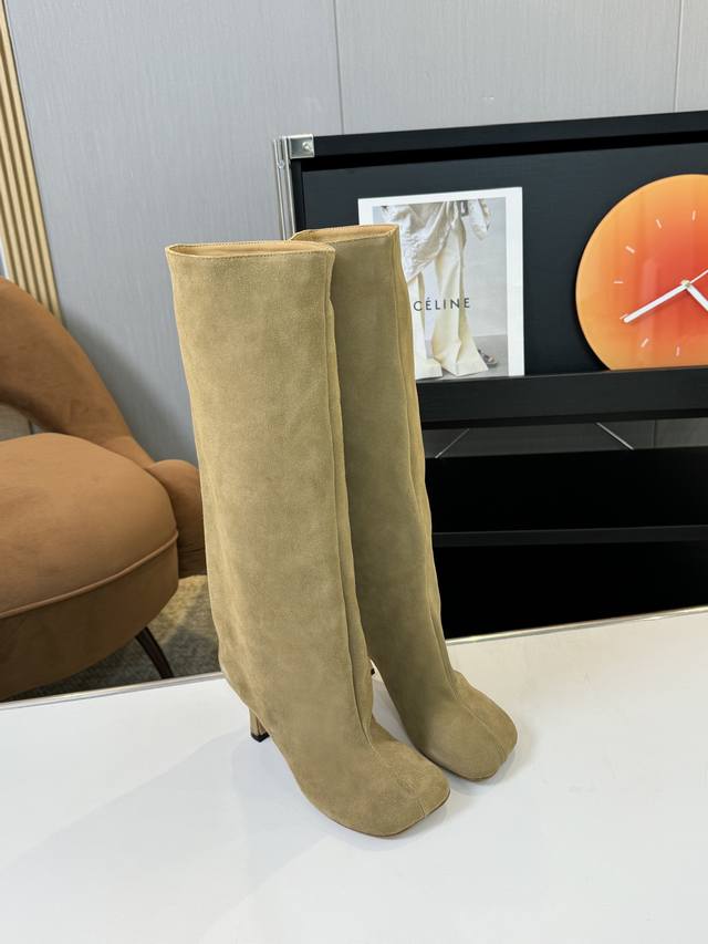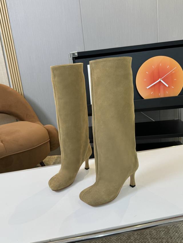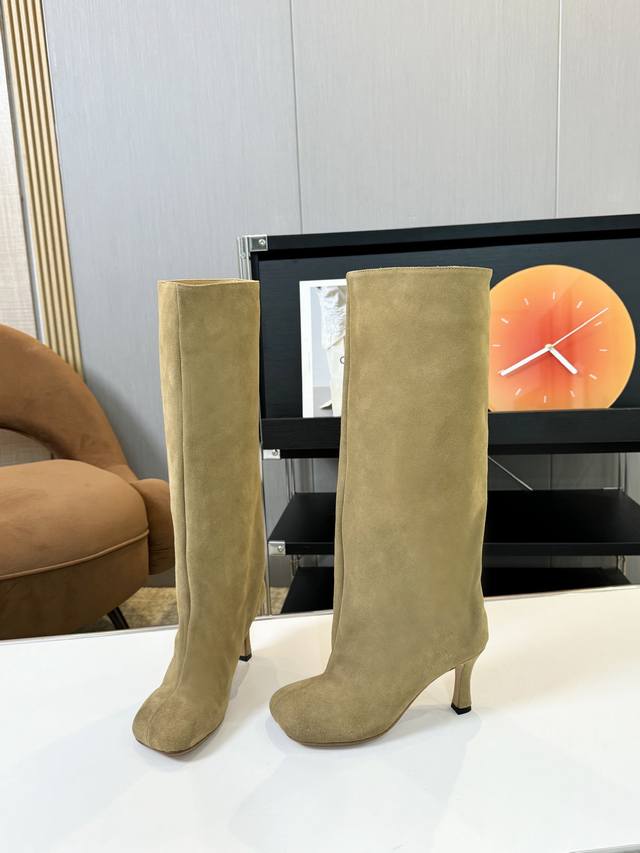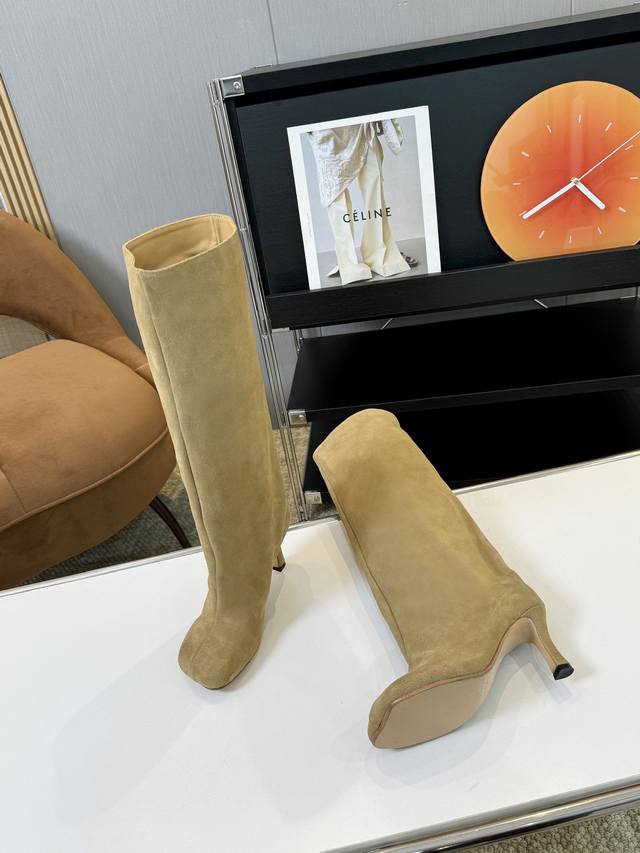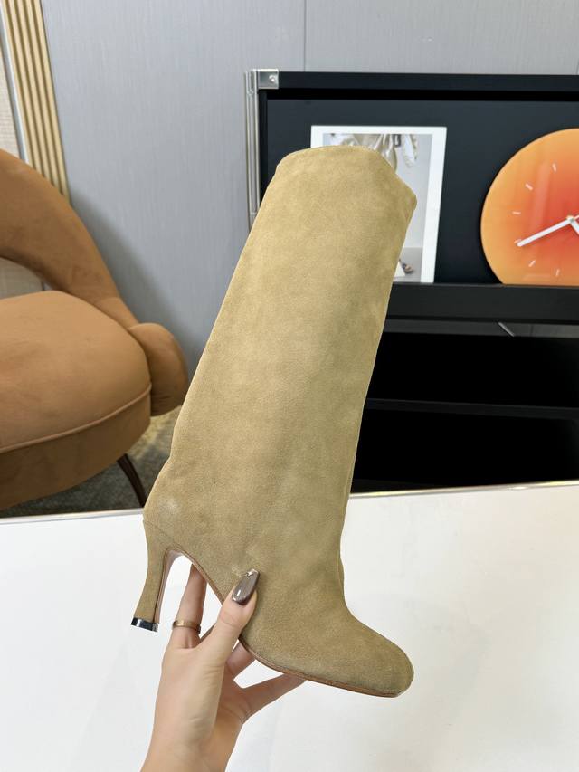 m6 小众 不过膝骑士靴女真麂皮磨砂复古裤管靴长筒靴高跟西部牛仔靴 内里:牛皮里 大底:意大利皮底 码数:35-40 40定做不退换