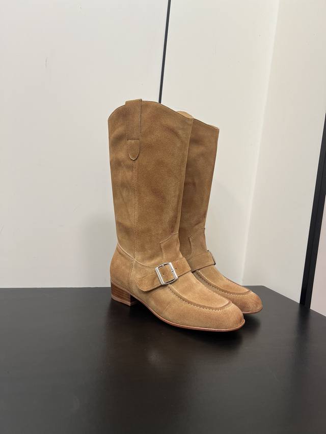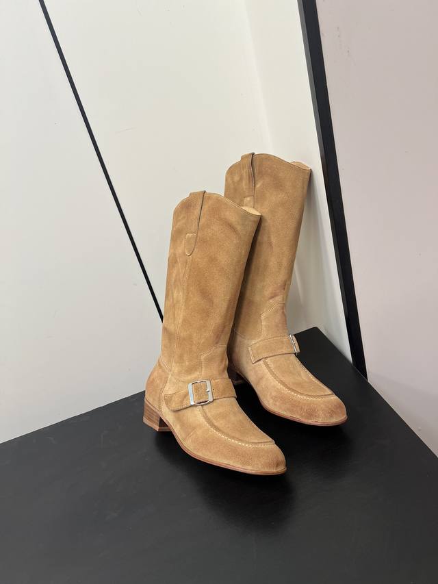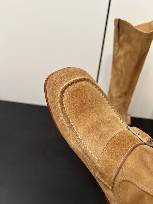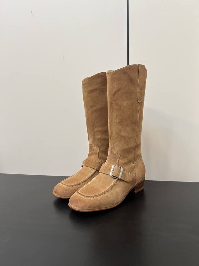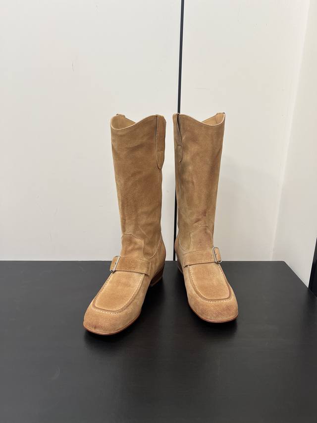 Maison Margiela 玛吉拉麂皮牛皮擦色靴子每一双都是独一无二宽筒直筒长靴不过膝 秋冬新款平底高筒靴