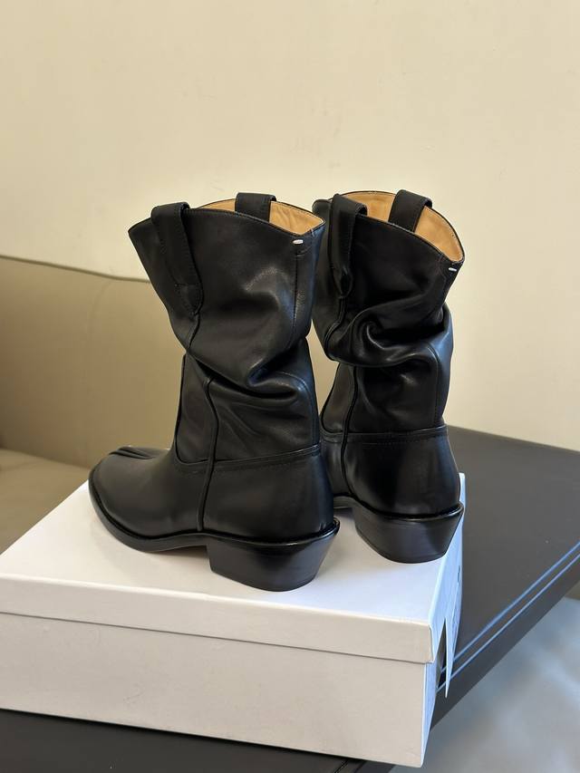 Maisonmargiela Mm6马吉拉西部靴 调性十足,辨识度极高 时髦亮眼的单品,搭配指数10颗 小牛皮材质,内里水染牛皮,鞋底牛皮 顶级精品35-41