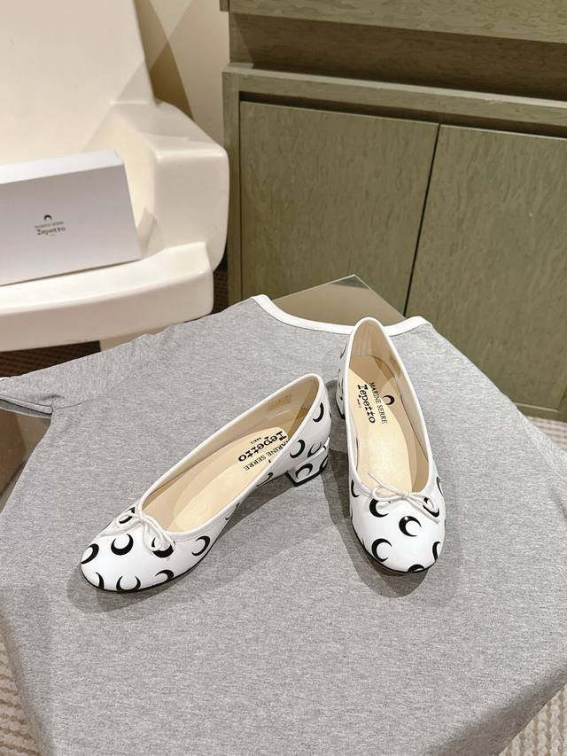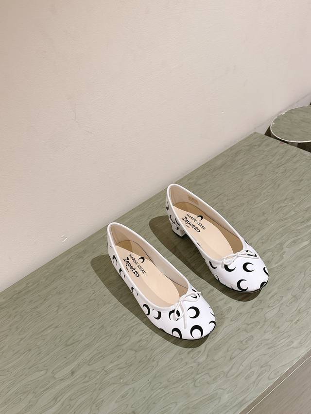 Marine Serre X Repetto 联名款 月牙印花浅口 芭蕾舞鞋 单鞋