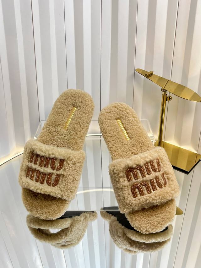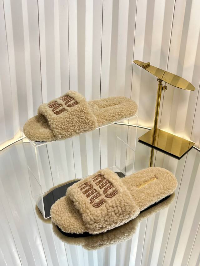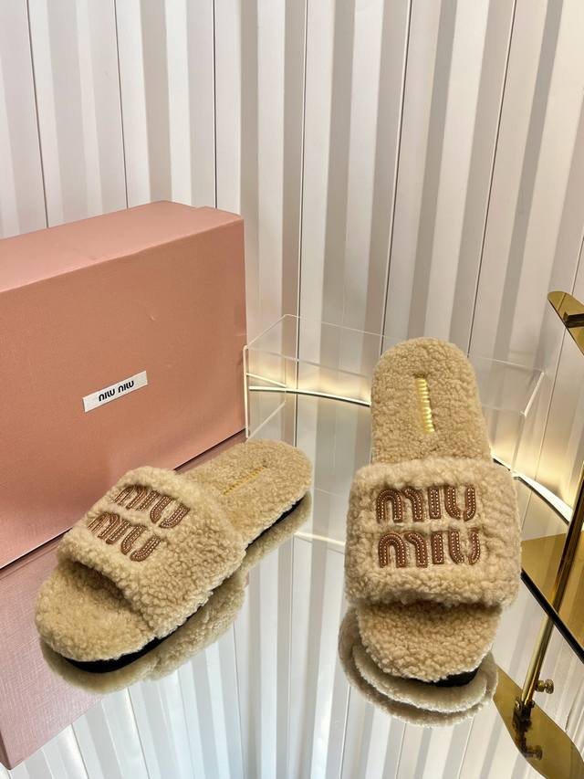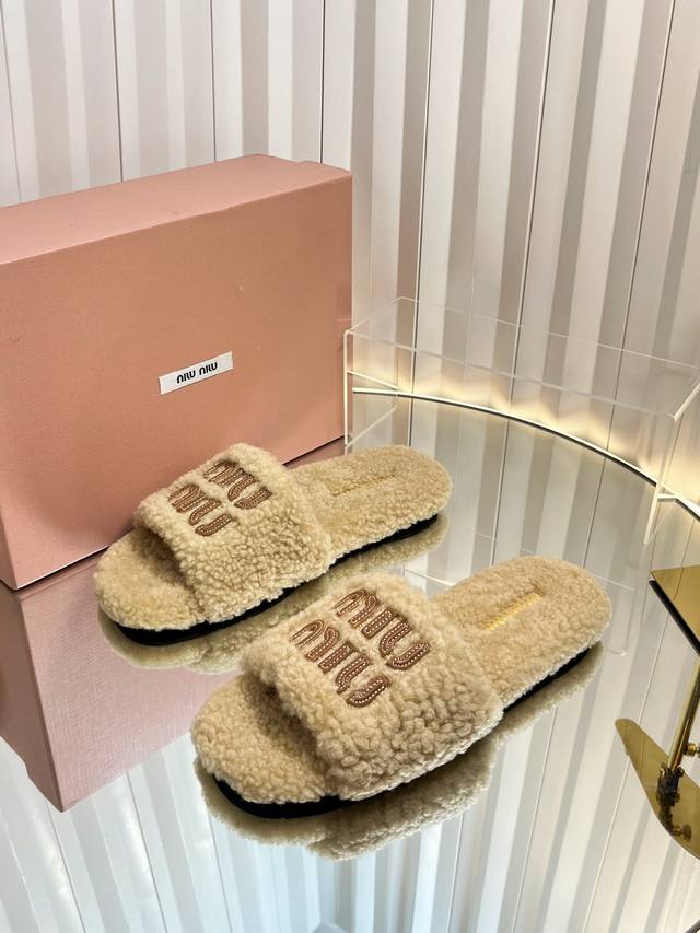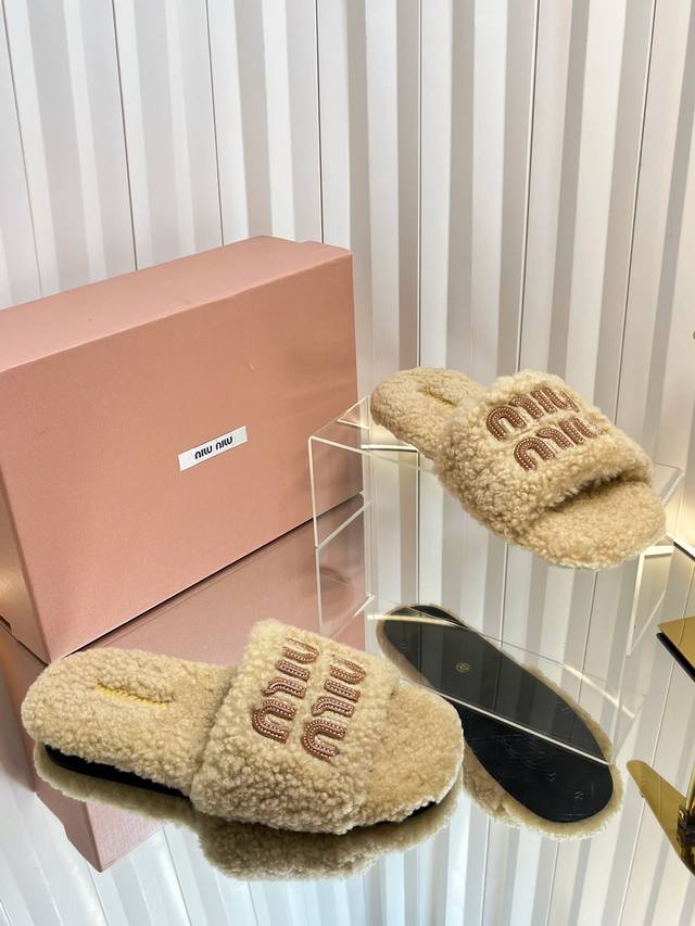 Miu Mi* 2025Ss 秋冬新款居家毛毛拖鞋