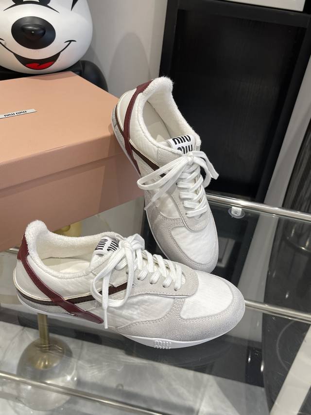 / miu Miu 新款火爆款脏脏鞋系带做旧小白鞋 今年主推款 复古做旧时尚 简约高级 随意搭配 上脚非常舒适,年度必入款!鞋面原版牛皮,羊京,内里羊毛里 ,原版大