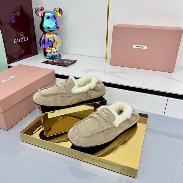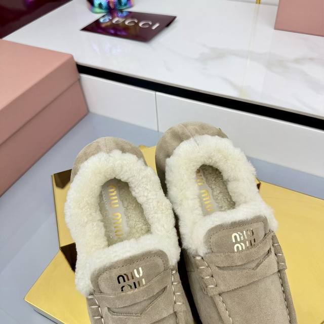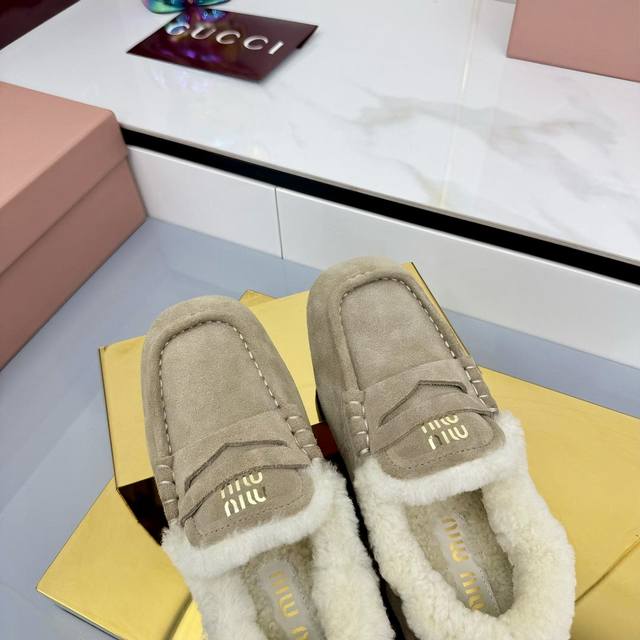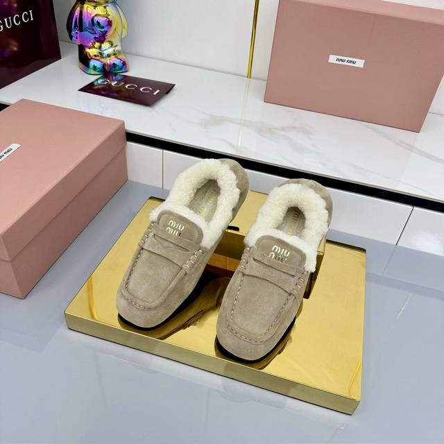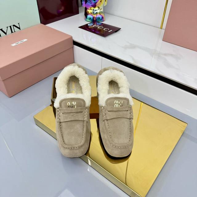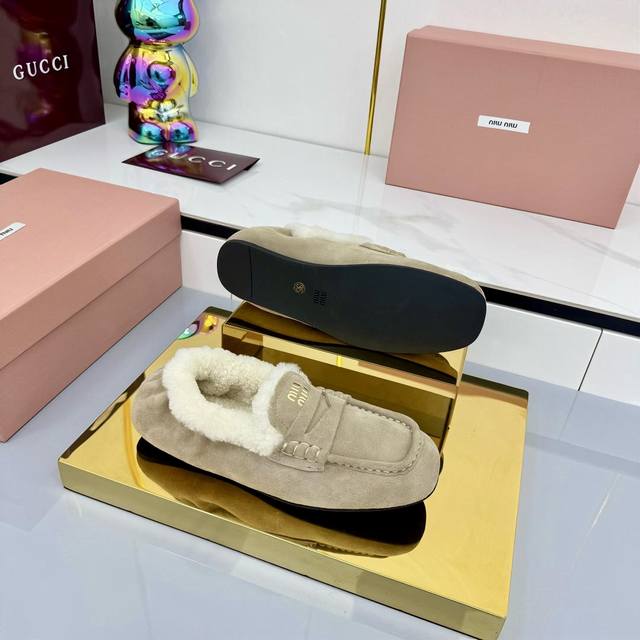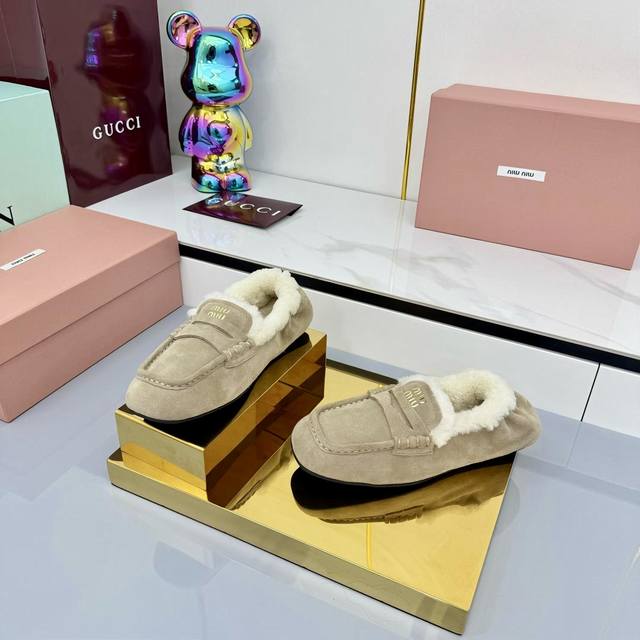 Miu Miu 2025秋冬新款 羊羔毛乐福鞋