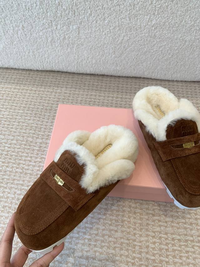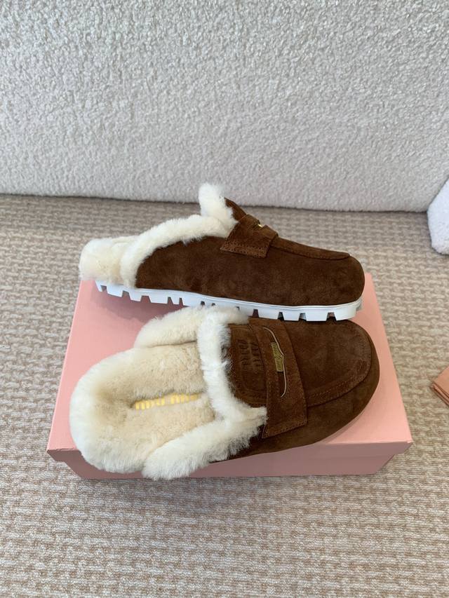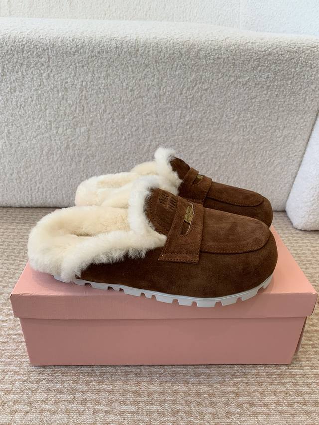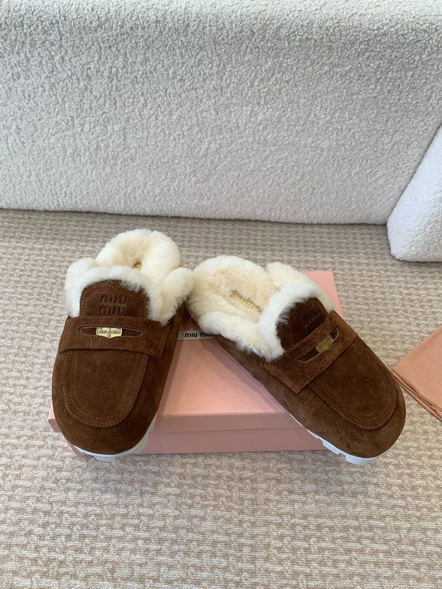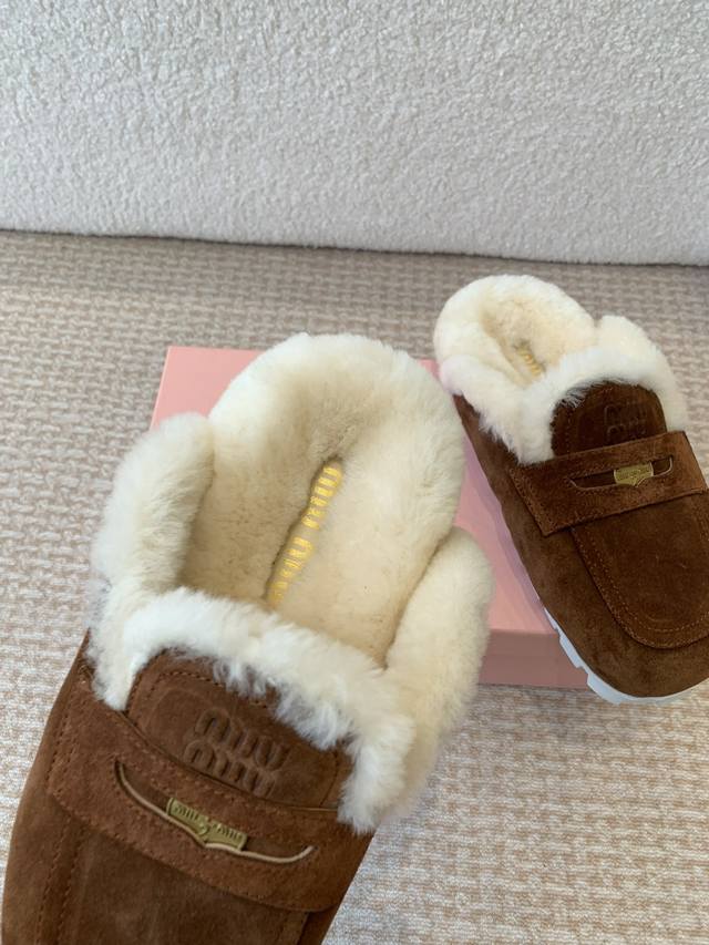 miu Miu 24Ss秀款金币 包头毛毛拖鞋