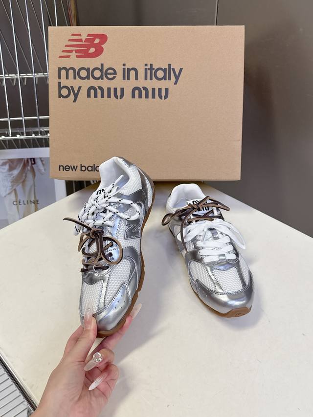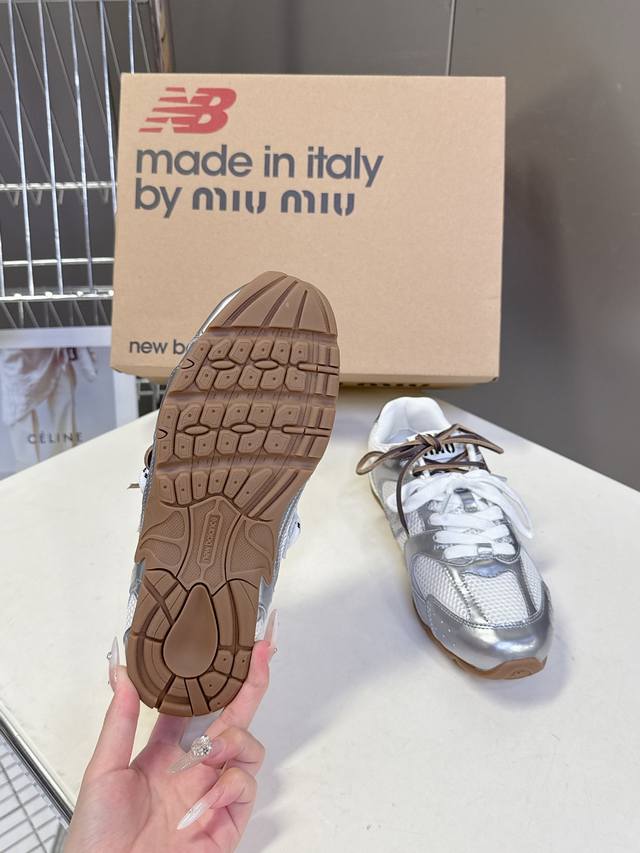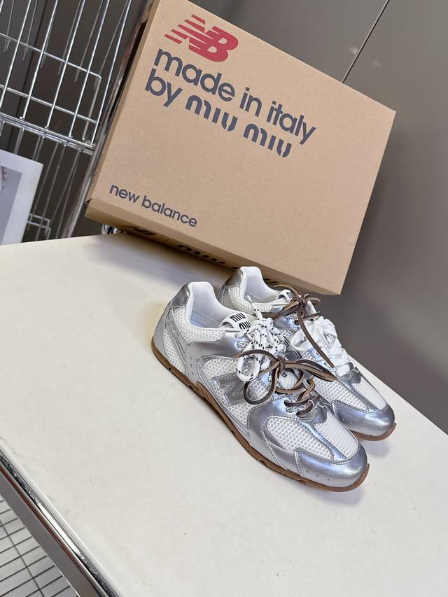 Miu Miunew Balance 联名系列运动鞋、各大品牌都热衷于跨界联名、缪缪这次联名诚意满满非常有亮点鞋面高丝光拼接、做旧毛边设计、复古又叛逆、令人眼前一亮、内里水染牛皮里、正品一鞋难求、上脚非常舒适百搭 原版全套包装 独家开模大底:Size:35-40