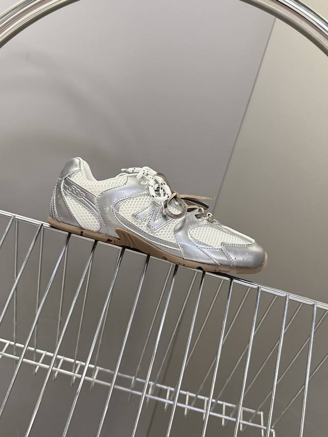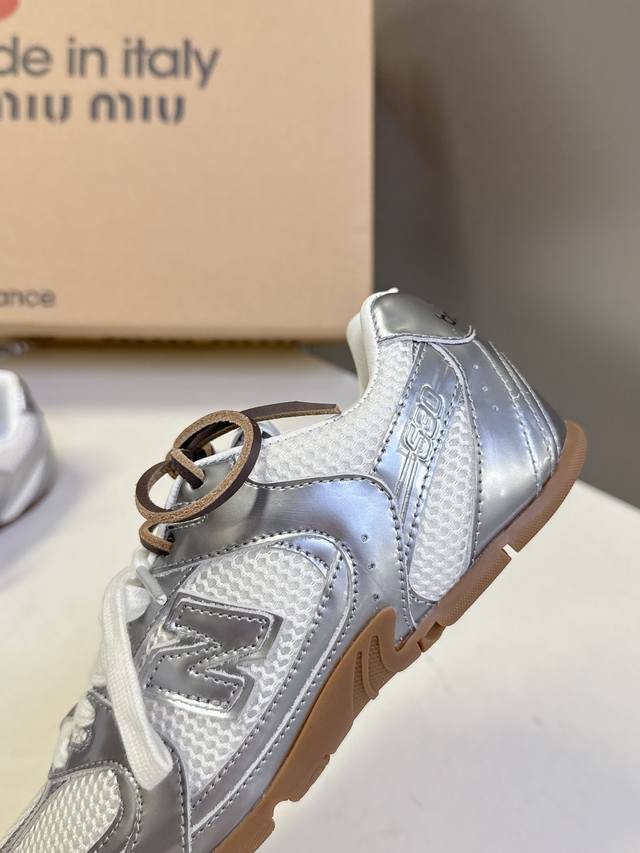 Miu Miunew Balance 联名系列运动鞋、各大品牌都热衷于跨界联名、缪缪这次联名诚意满满非常有亮点鞋面高丝光拼接、做旧毛边设计、复古又叛逆、令人眼前