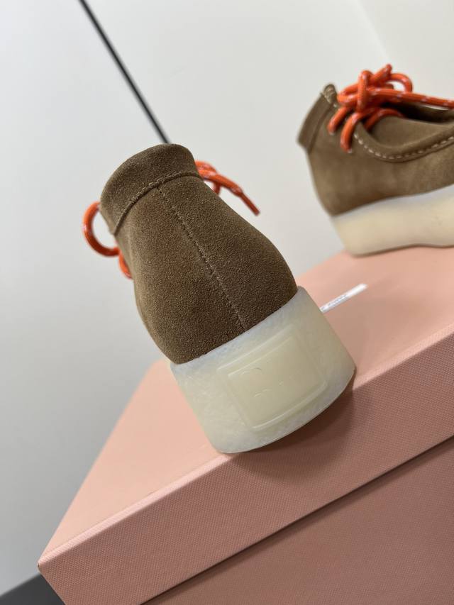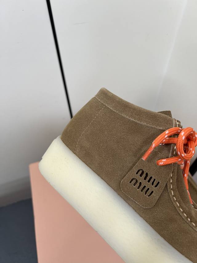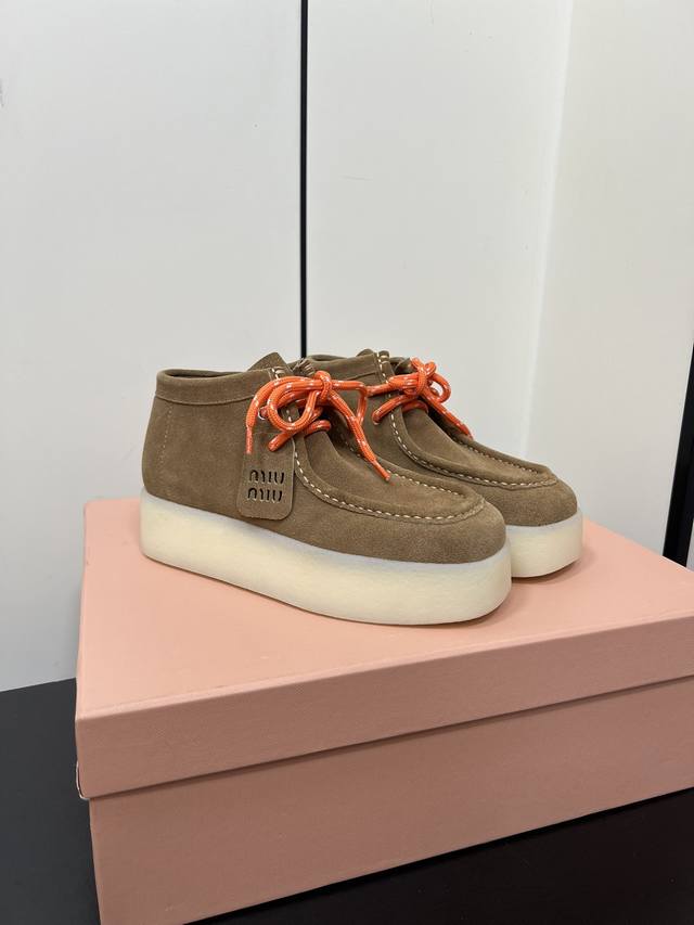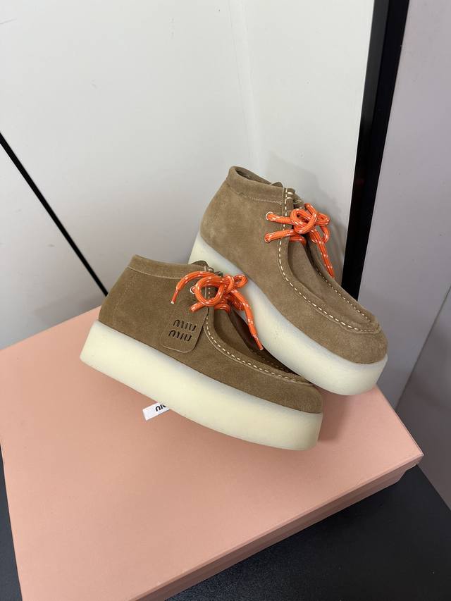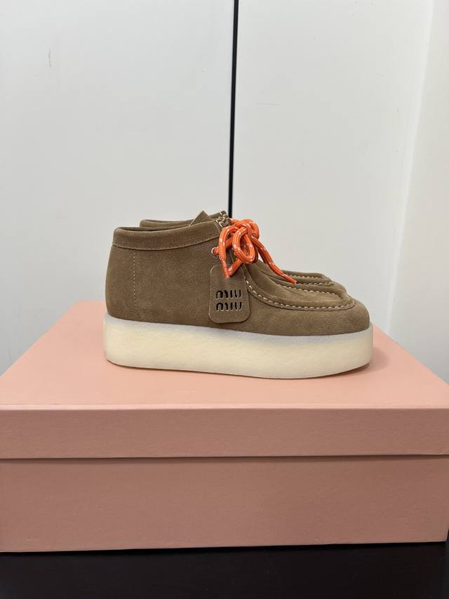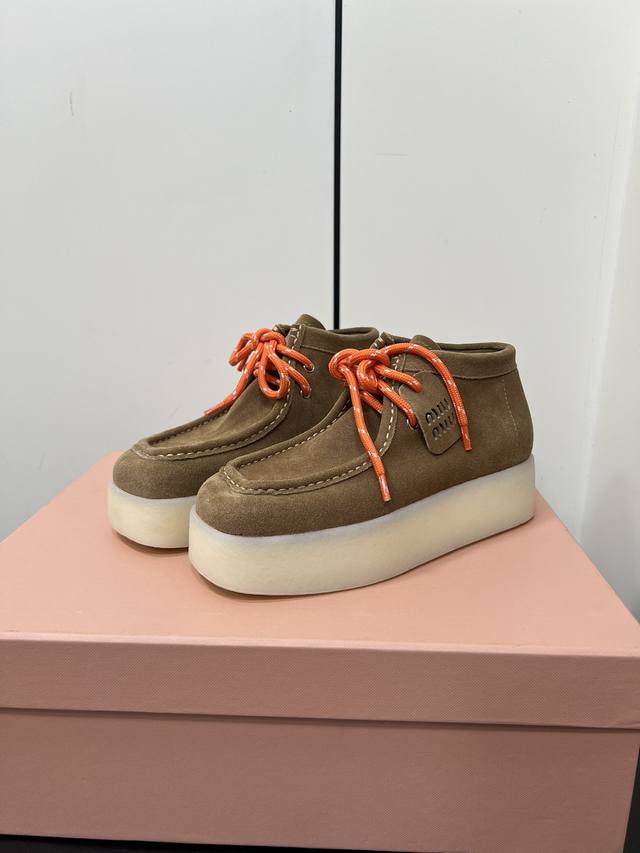 / Miumiu新款系带厚底鞋 一秒入秋冬 增高的同时鞋底又不重 强烈推荐上脚 Logo点缀增加细节感 上脚真的巨好看 鞋面牛反绒 内里垫脚牛皮 原版开模大底 尺码