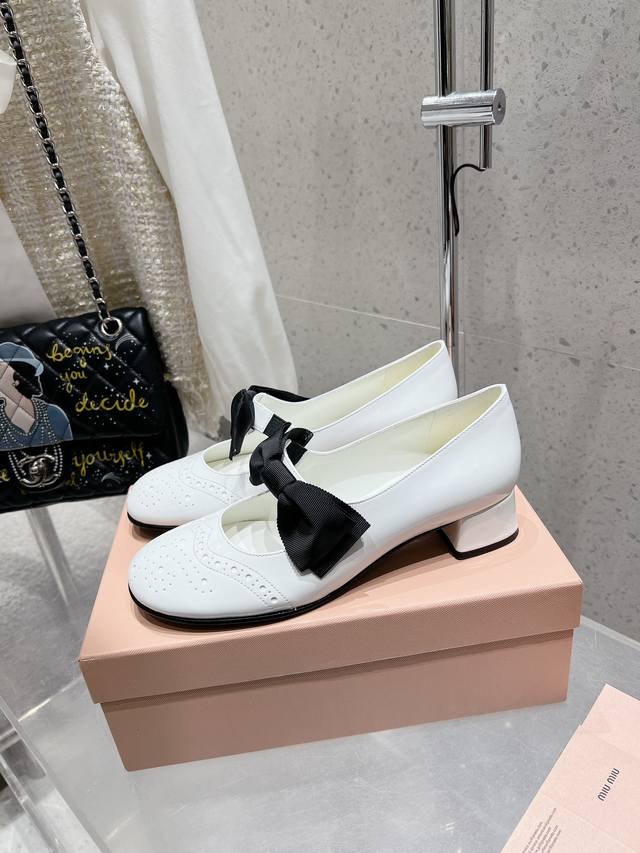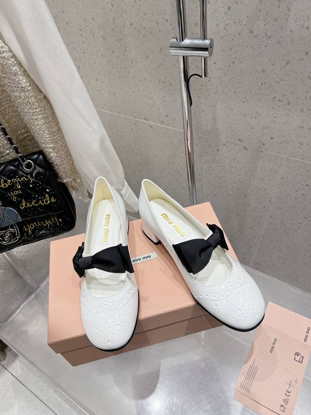 / Miumiu缪缪 秋冬新款英伦风玛丽珍蝴蝶结乐福鞋Miumiu秀场 复古风独一无二的来自miu Miu系列的细节特写 新季的潮流要素一 适当面料:进口原版进口开