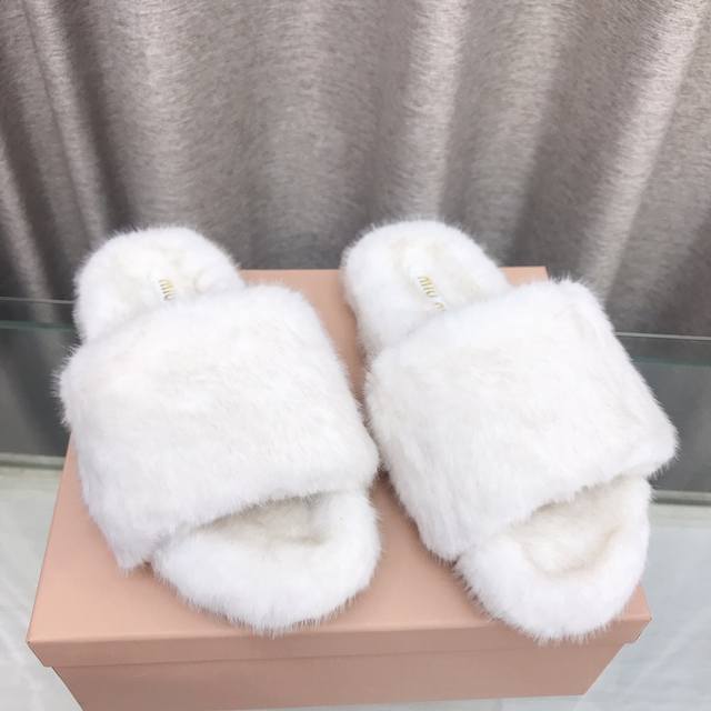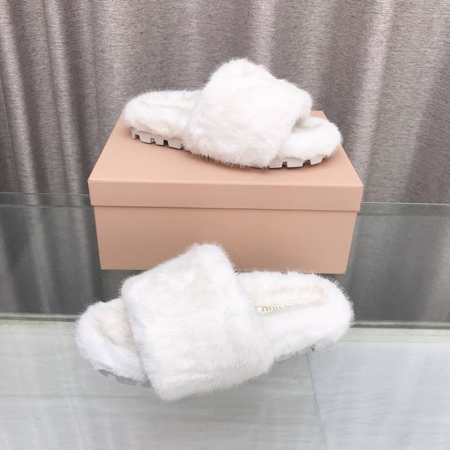 Miumiu~缪缪2024Ss秋冬新款 毛毛拖鞋