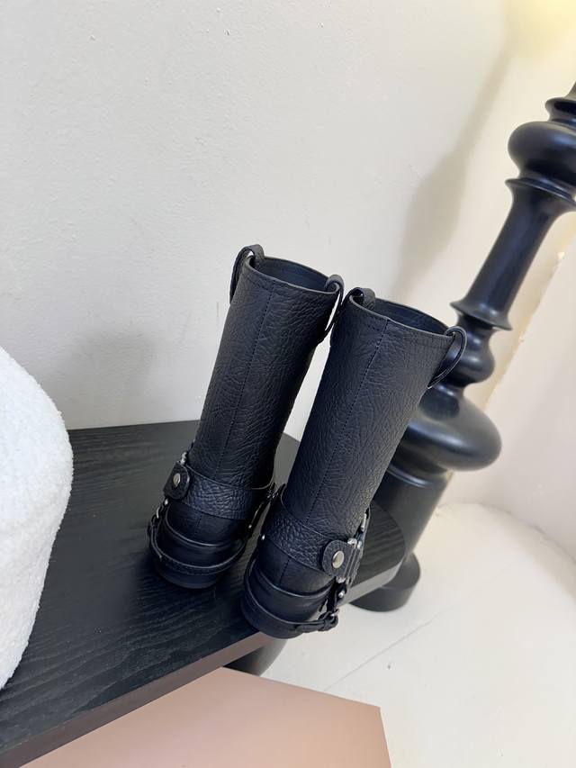 Miumiu谬谬朋克风秋冬机车造型长靴松弛感限量走秀款一双封神复古骑士靴切尔西短靴 怎么穿都好看今夏时髦精最爱 看起来不怎么舒服 上脚超级舒服 面料:进口牛皮