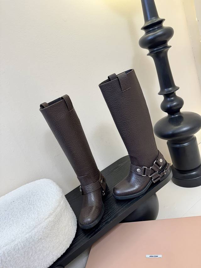 Miumiu谬谬朋克风秋冬机车造型长靴松弛感限量走秀款一双封神复古骑士靴