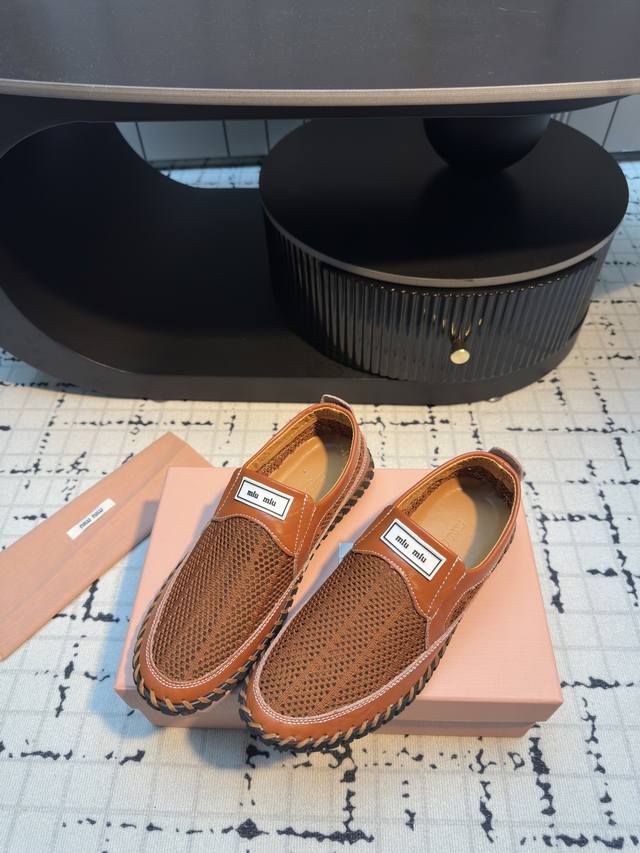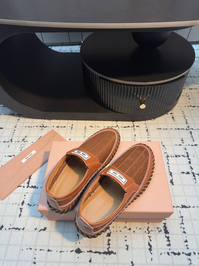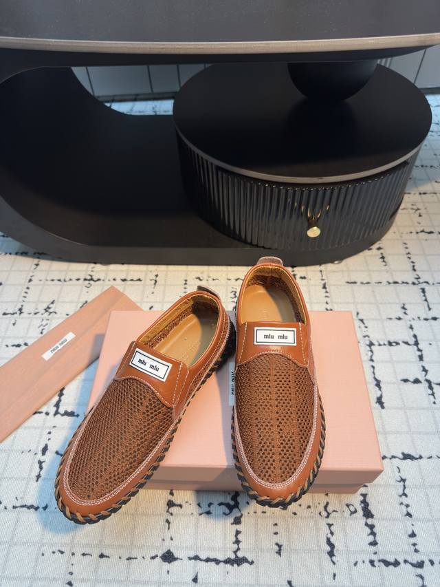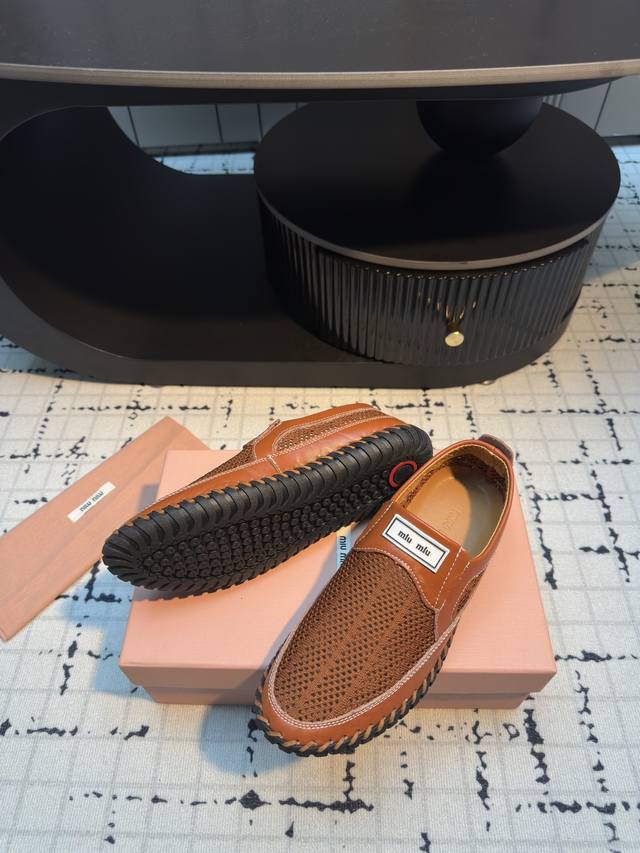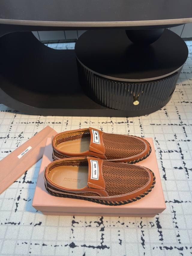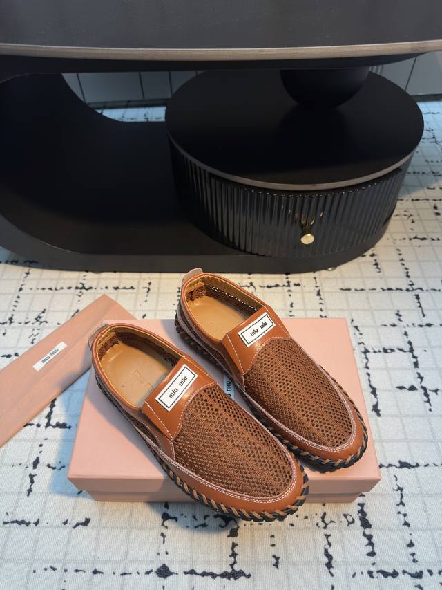 miumiu 缪缪一脚蹬薄款镂空休闲豆豆皮鞋