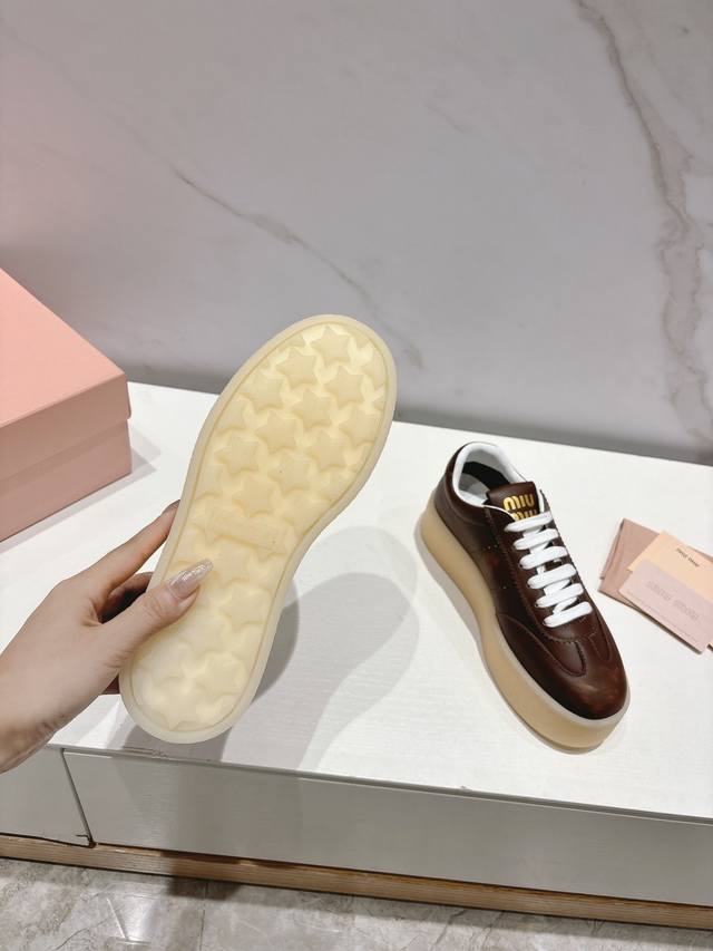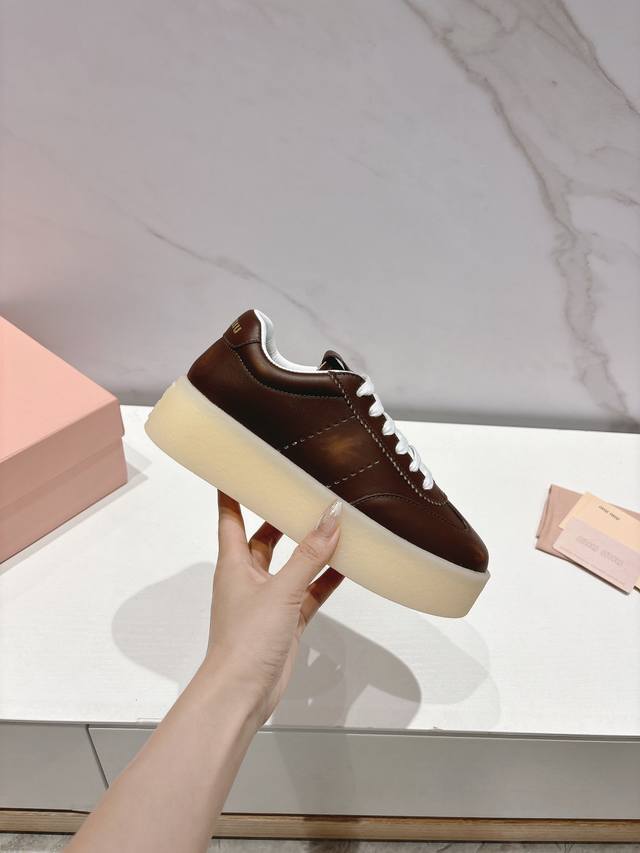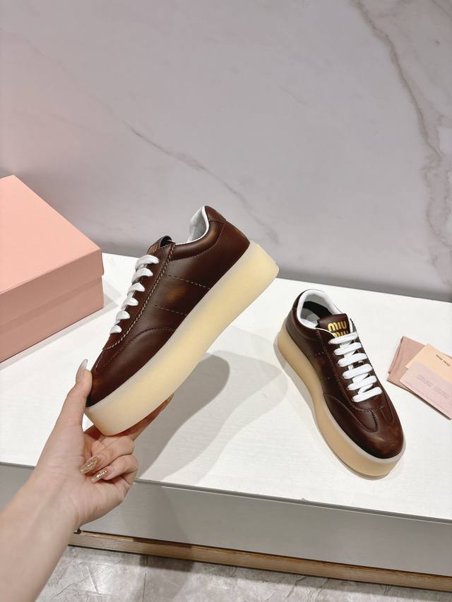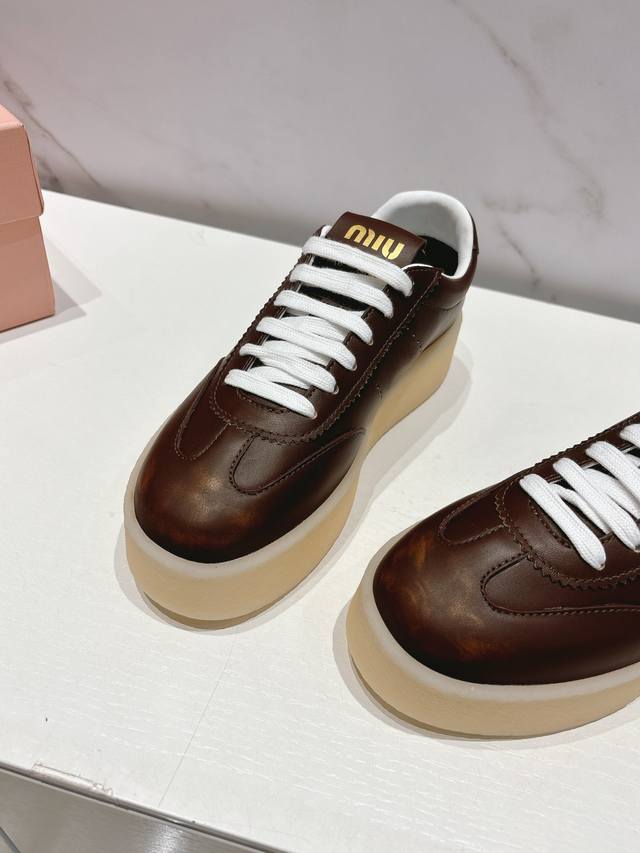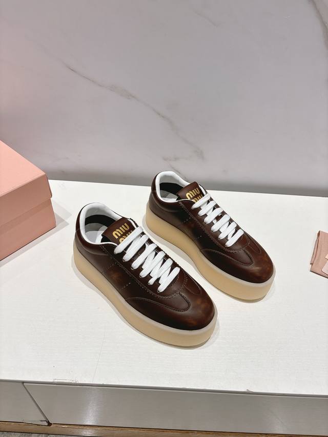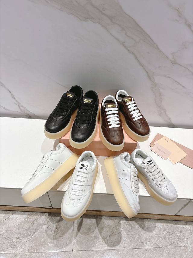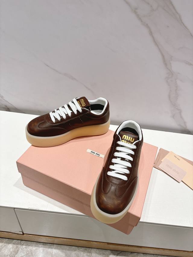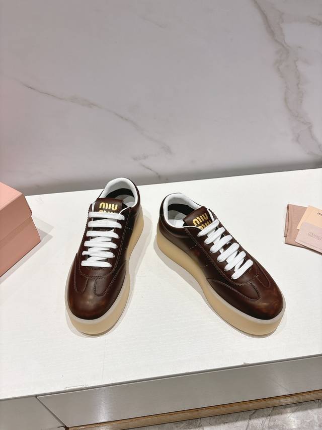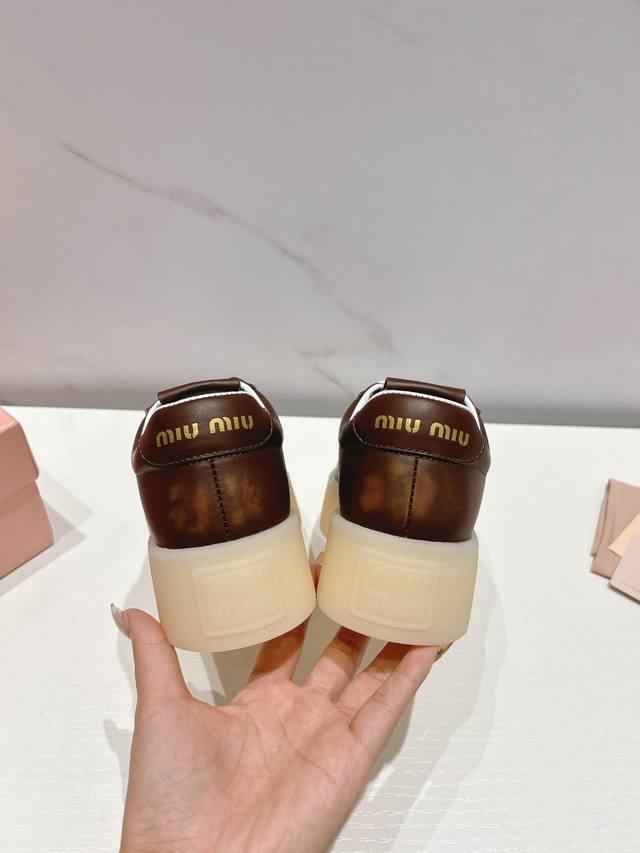 Miumiu 缪缪新款美式复古风~颜值担当火爆厚底小白鞋 不得不入的一款~做旧时尚,简约高级 随意搭配上脚非常舒适,年度必入款!