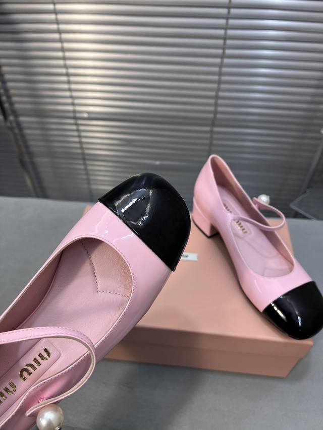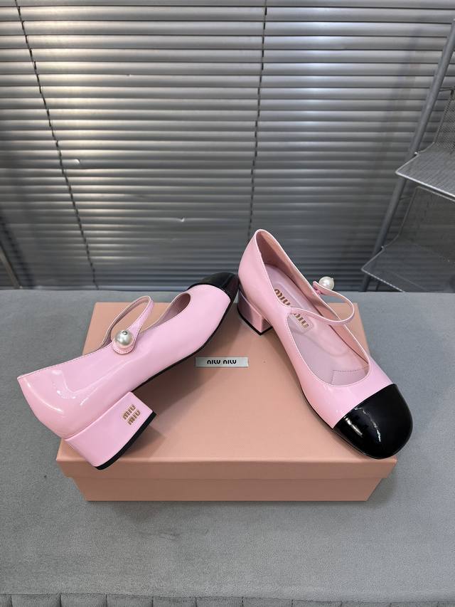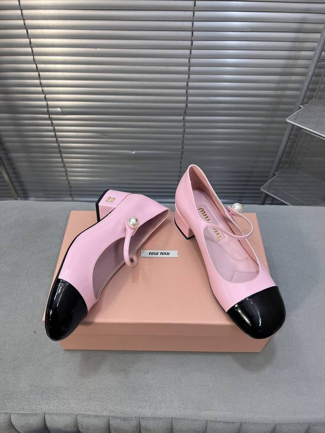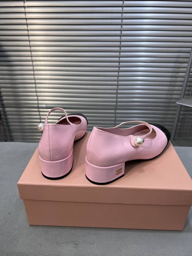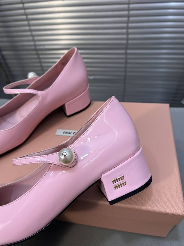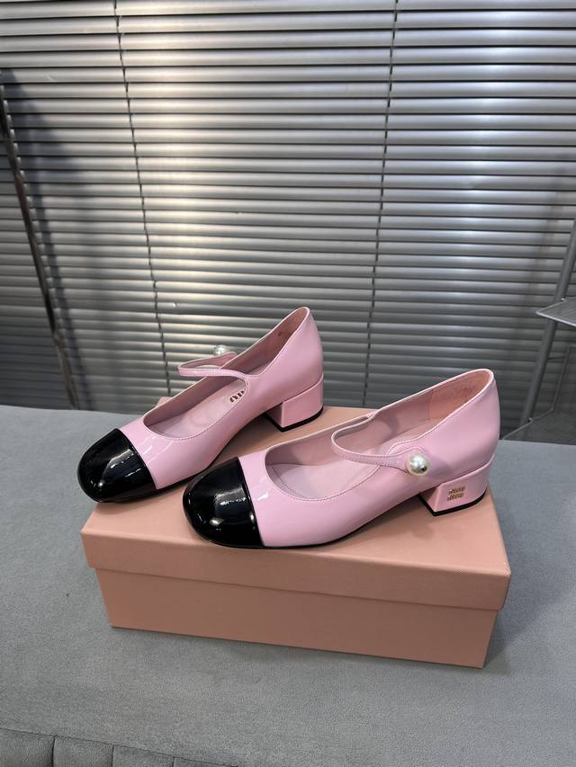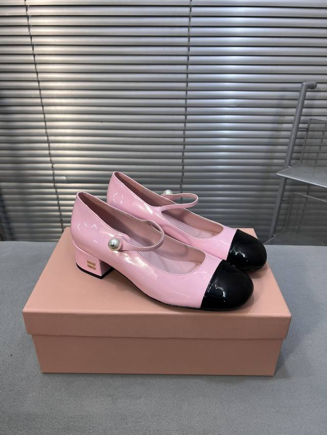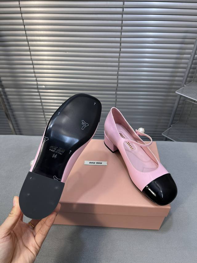Miumiu 缪缪春秋新款 玛丽珍单鞋 方头粗跟女鞋 鞋面:进口牛漆皮 内里:进口羊皮 大底:真皮大底 跟高:3.5Cm 码数:35-40 40码定做不退不换