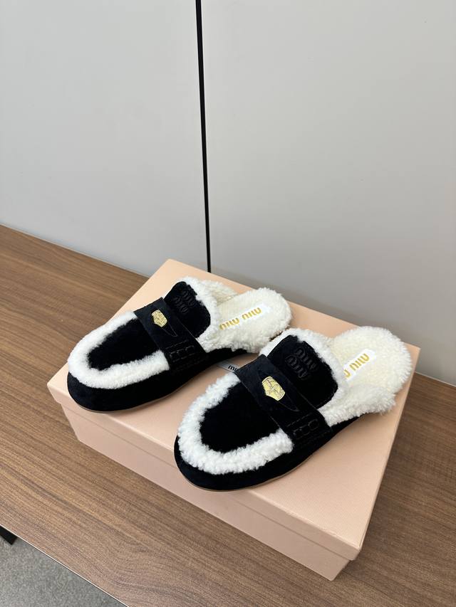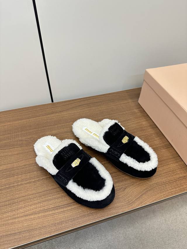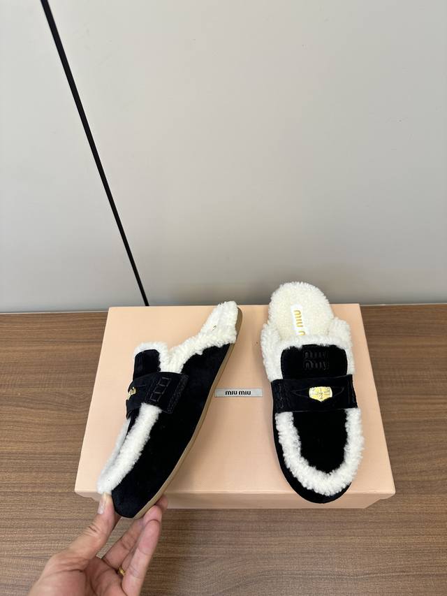 Miumiu 缪缪 Ss秋冬,金币款懒人拖鞋毛毛鞋