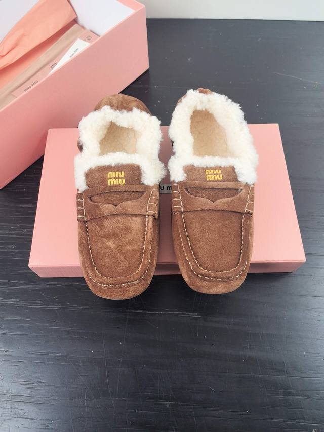 Miumiu 缪缪2025Ss秋冬走秀款一脚蹬驾车鞋加毛乐福鞋毛毛鞋