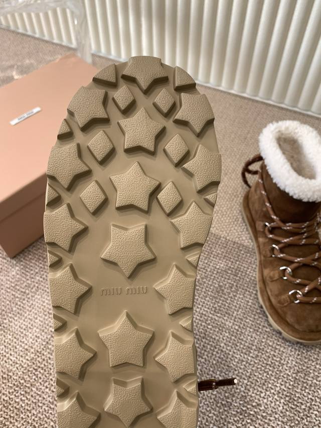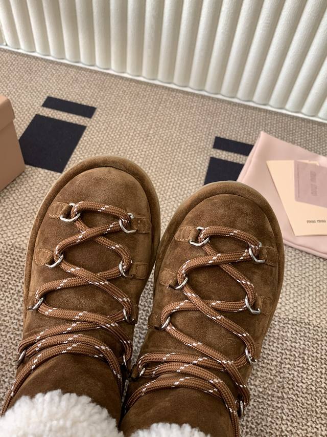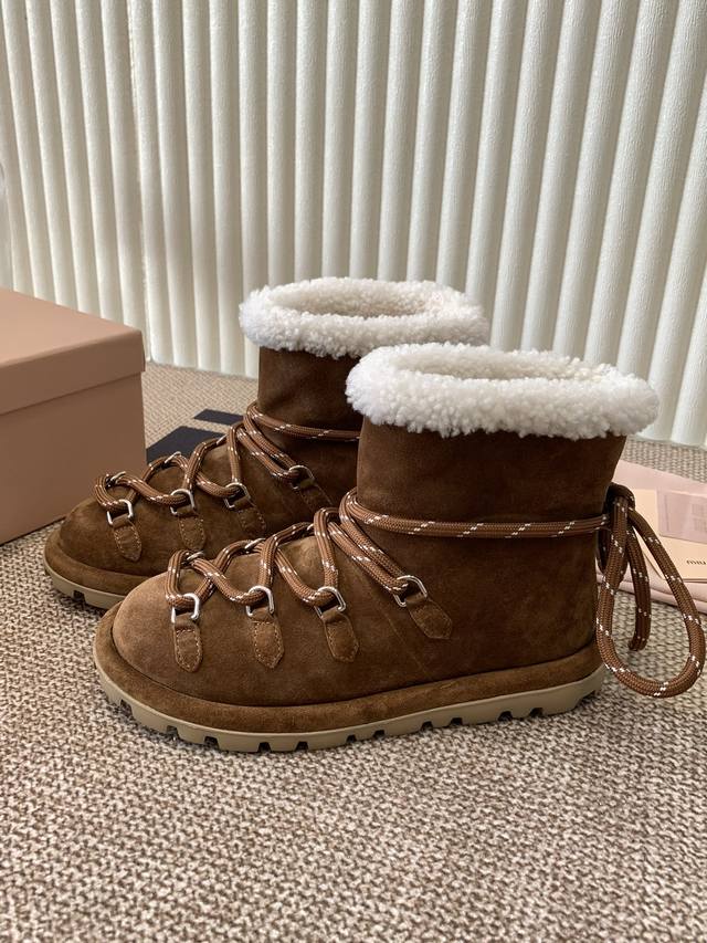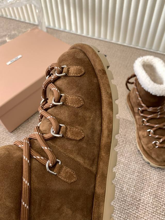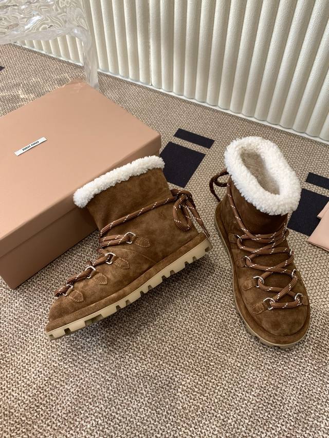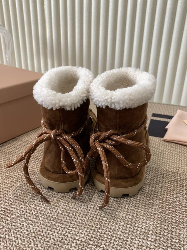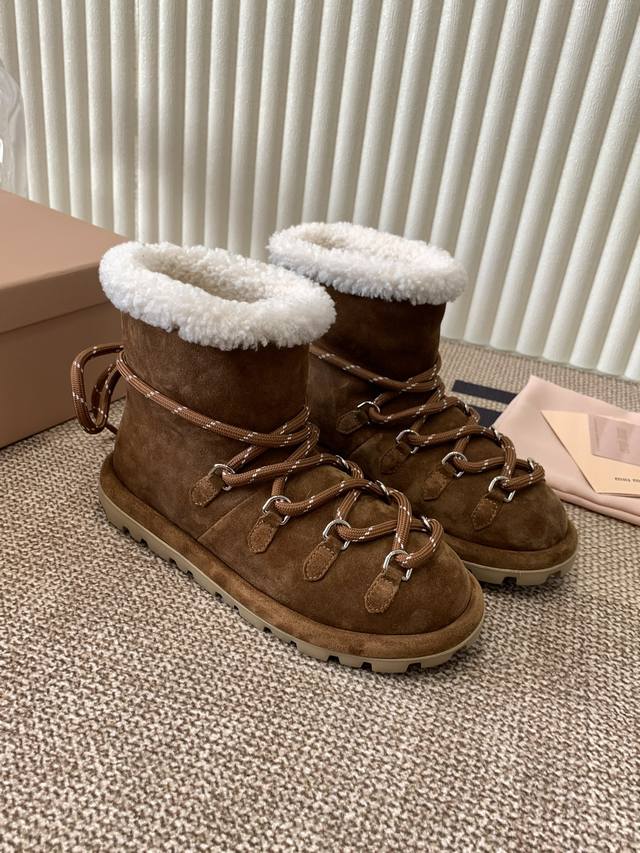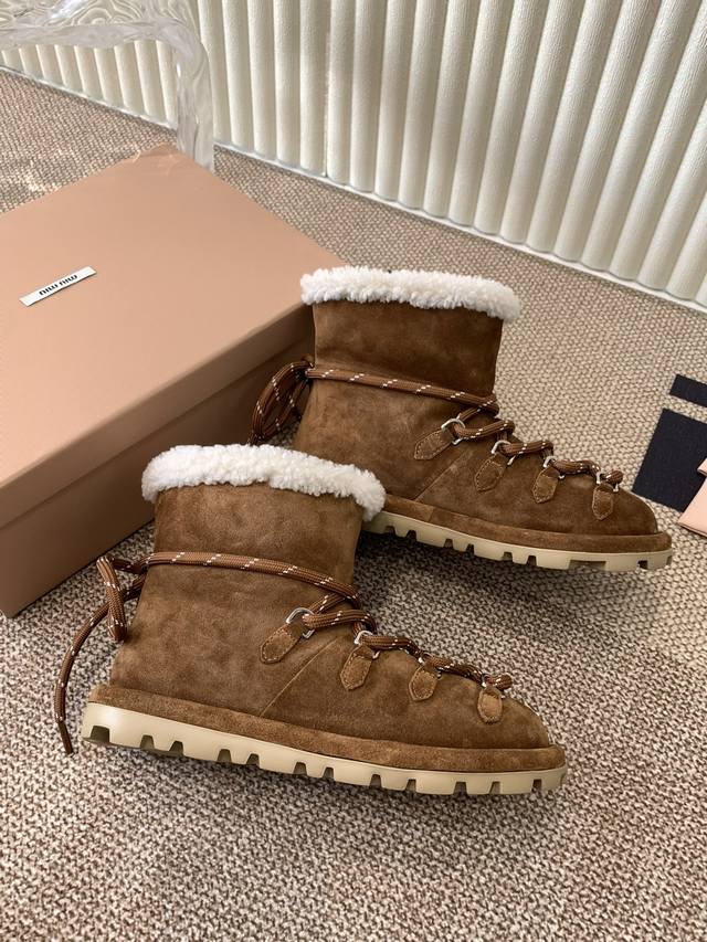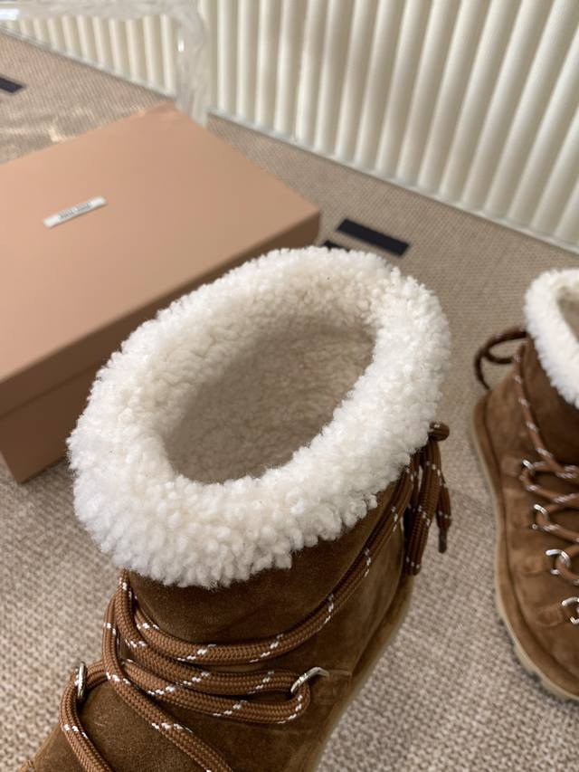 miumiu 缪缪24Ss 秋冬最新羊毛款保暖雪地靴系带短靴