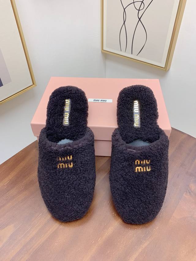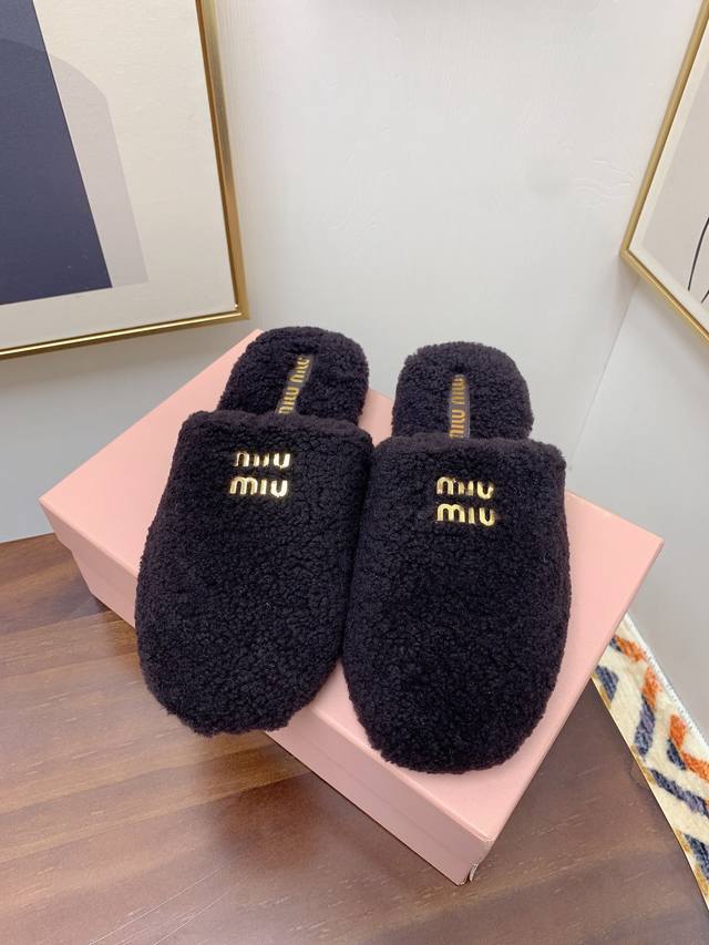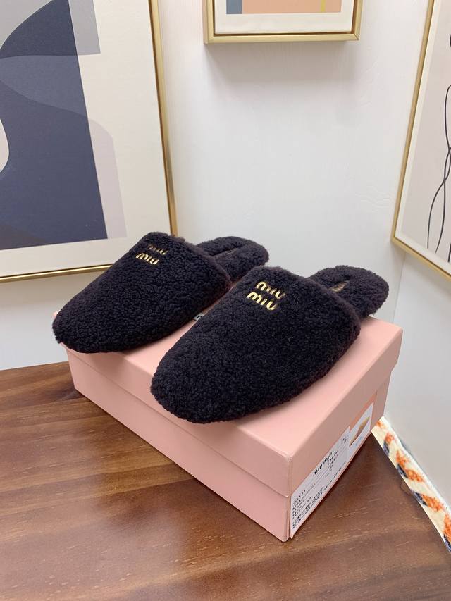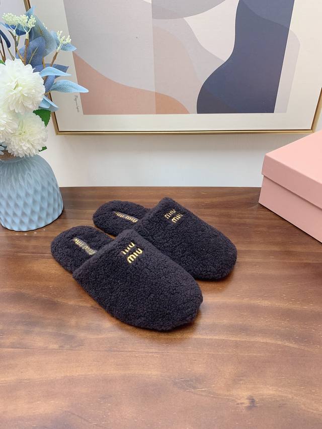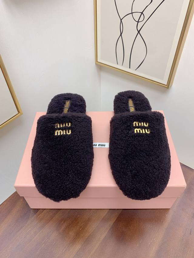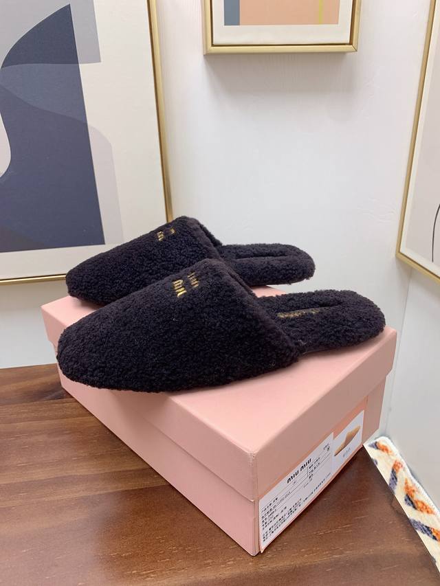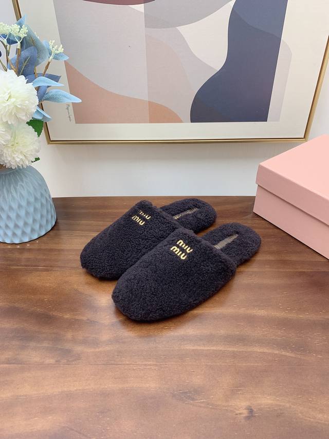 / Miumiu 2024新款羊毛拖鞋甜美清新,真的太容易捕获少女的心散发出独特时尚美感,怎么会这么好看越看越上头 甄选对版羊毛面料,羊皮内里 私模橡胶防滑大底 尺