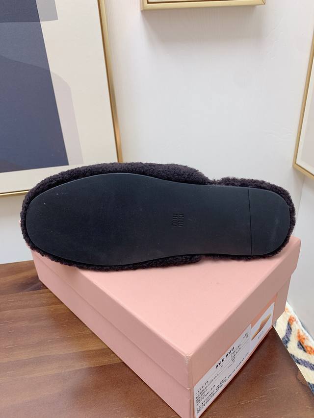 Miumiu 2024新款羊毛拖鞋甜美清新,真的太容易捕获少女的心散发出独特时尚美感,怎么会这么好看越看越上头 甄选对版羊毛面料,羊皮内里 私模橡胶防滑大底 尺