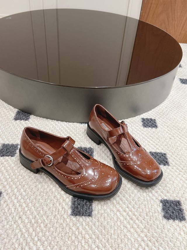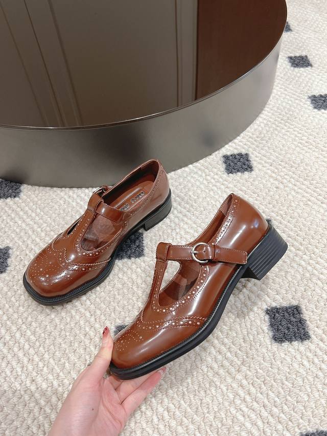 miumiu2024最新秀款,英伦风布洛克玛丽珍鞋! 35-40码 面料开边珠,内里羊皮!